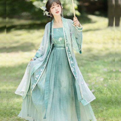 Han Yukui song style hanfu women’s 2023 new style only green summer Chinese style Changgan Temple chopsticks improved Super fairy ancient costume