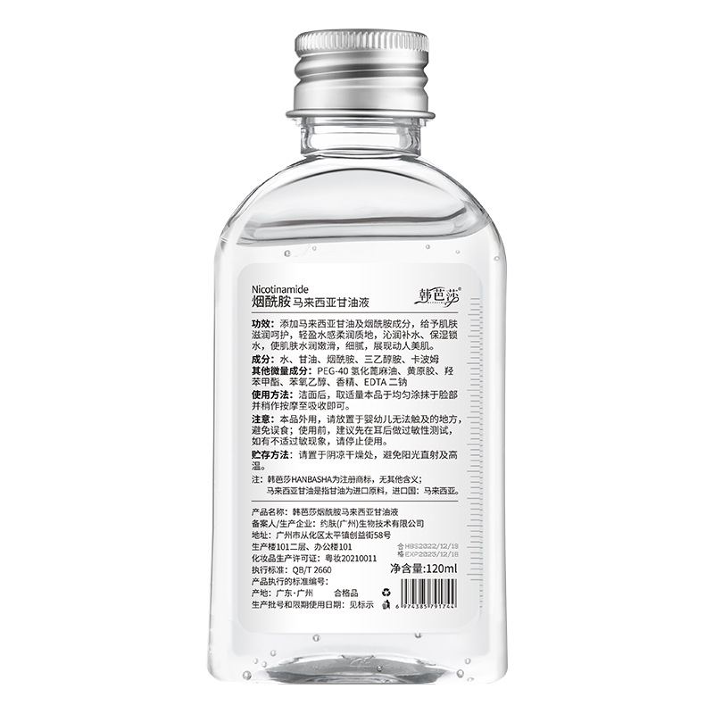 | nameOriginal | Hanbaha Nicotinamide Malaysia Glycerin Liquid for Facial Skin Care Hydrating Moisturizing Moisturizing Body Moisturizing and Brightening |