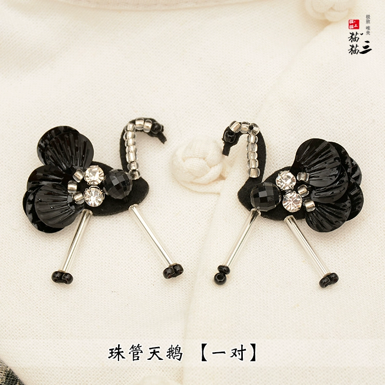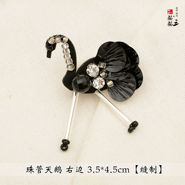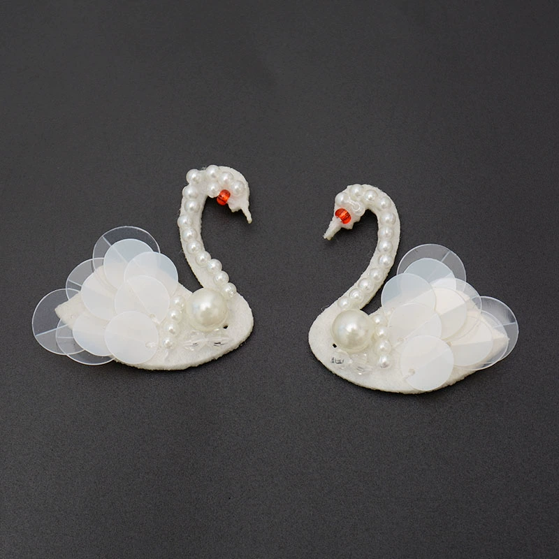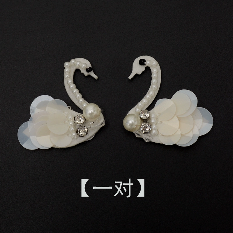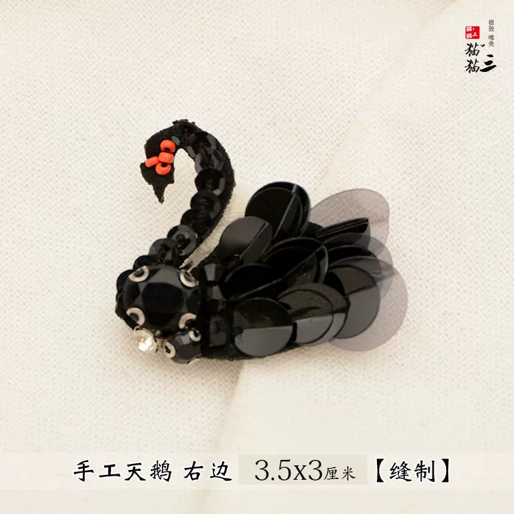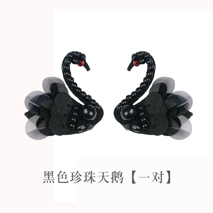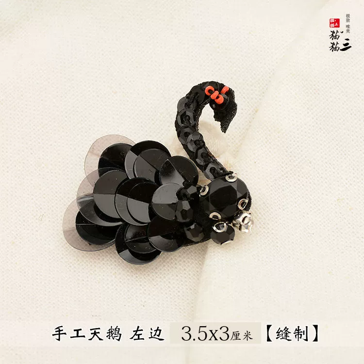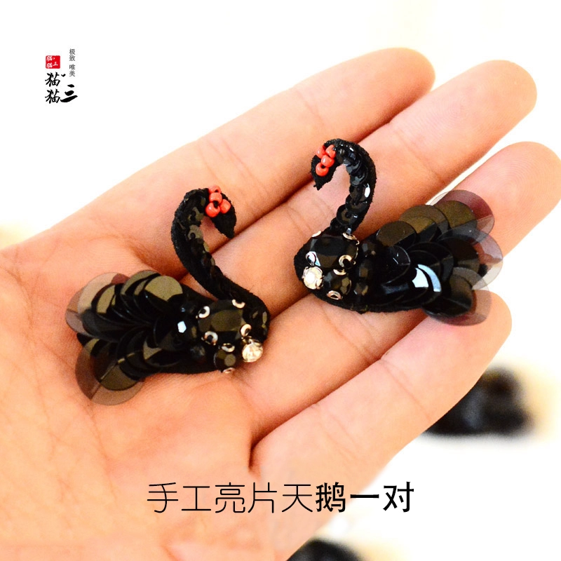 Hand-beaded black sequin swan cloth patch small clothing bag decorative applique DIY hole patching accessories hand sewing