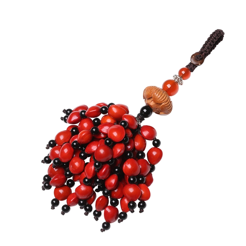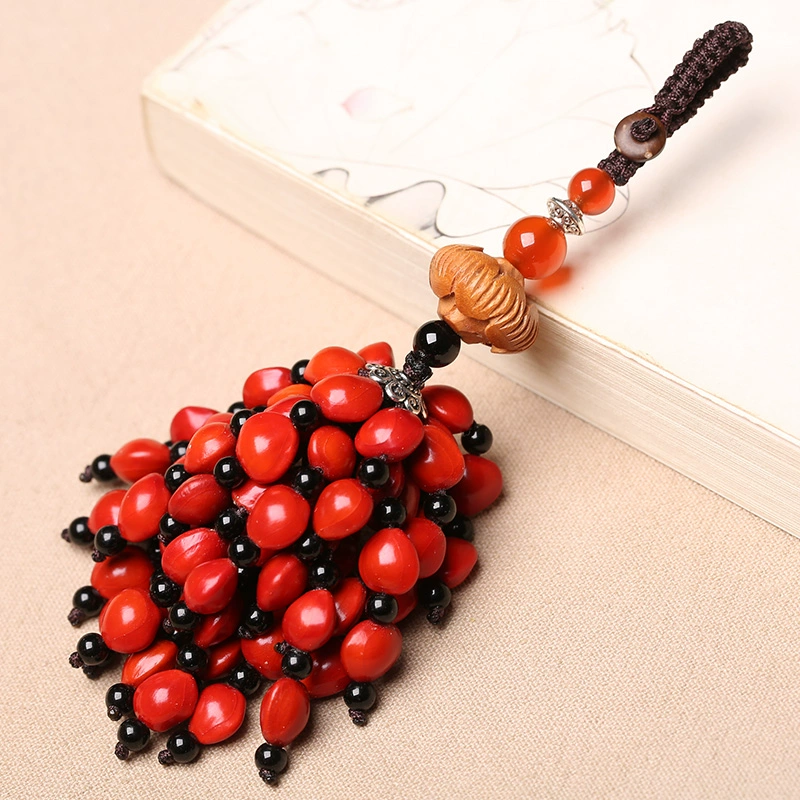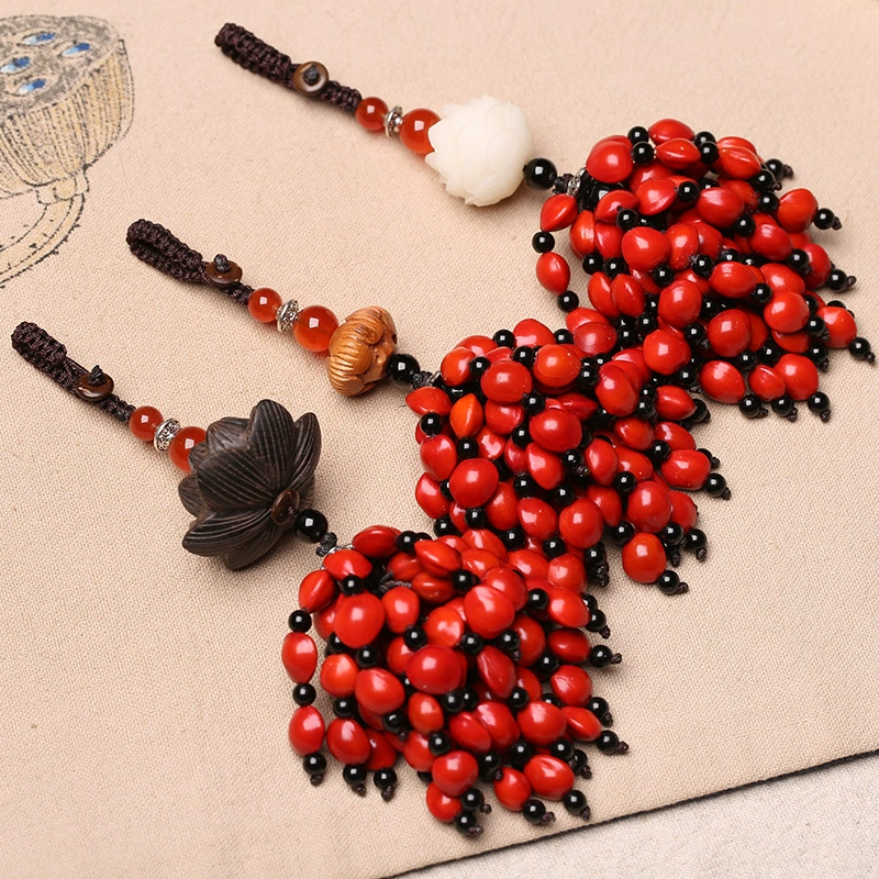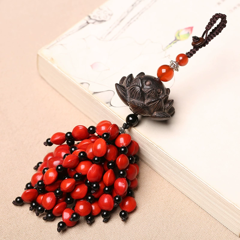 | nameOriginal | Hand-carved peach wood ebony lotus car keychain bag pendant red bean bodhi hanging tassel tassel pendant |