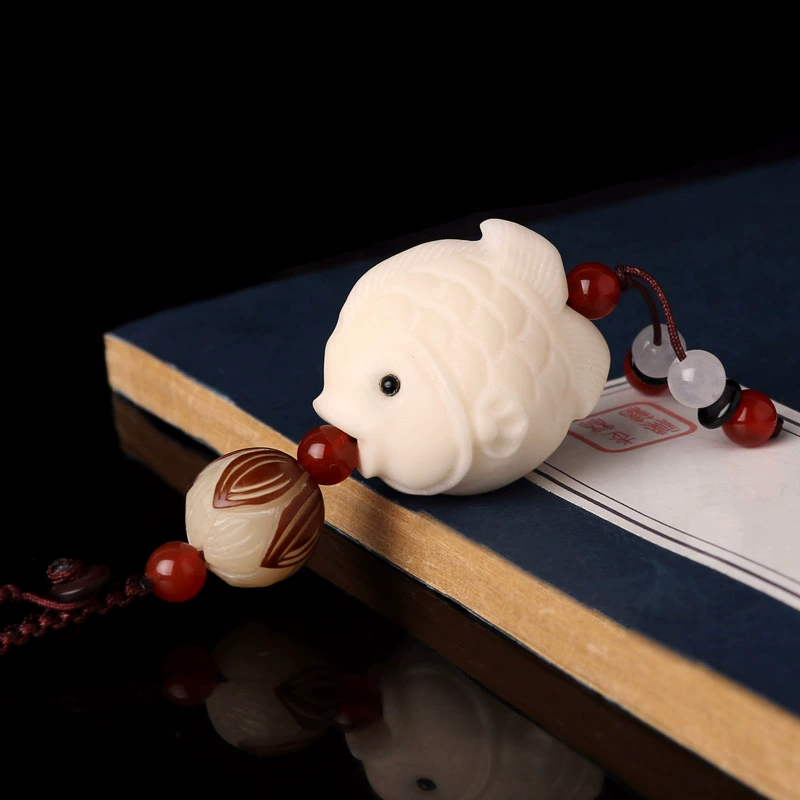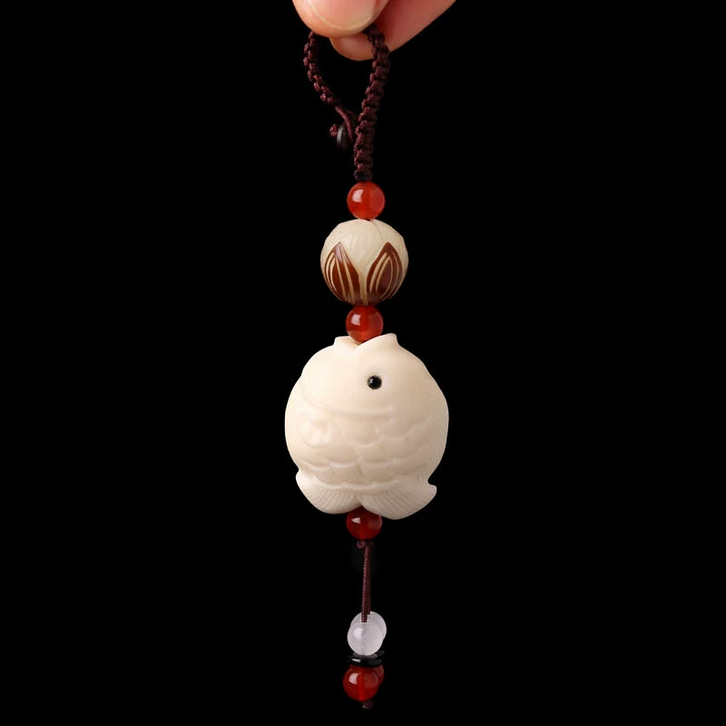 | nameOriginal | Hand-carved vintage ivory fruit lucky fish lotus three carp koi pendant key chain pendant ethnic style |