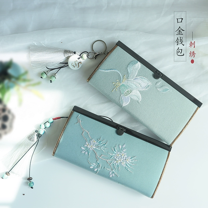 | nameOriginal | Hand-held long wallet 8 cards embroidered cloth bag handmade fabric forest style literary retro Chinese style antique ladies gift |