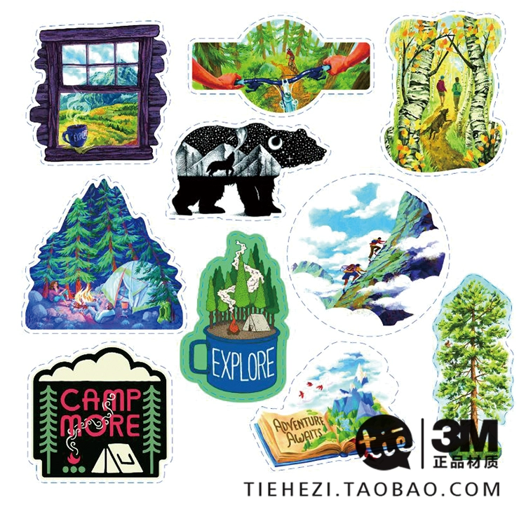 Hand-painted style outdoor stickers Laptop suitcase luggage trendy surfboard diving waterproof 3M stickers