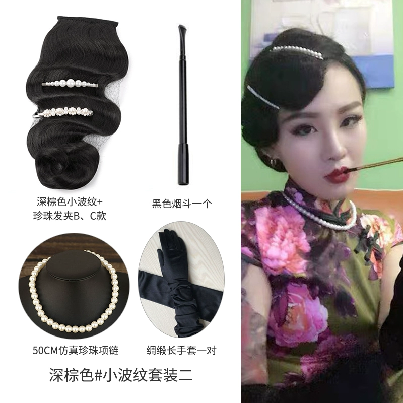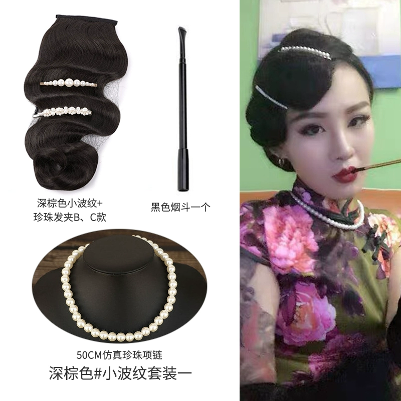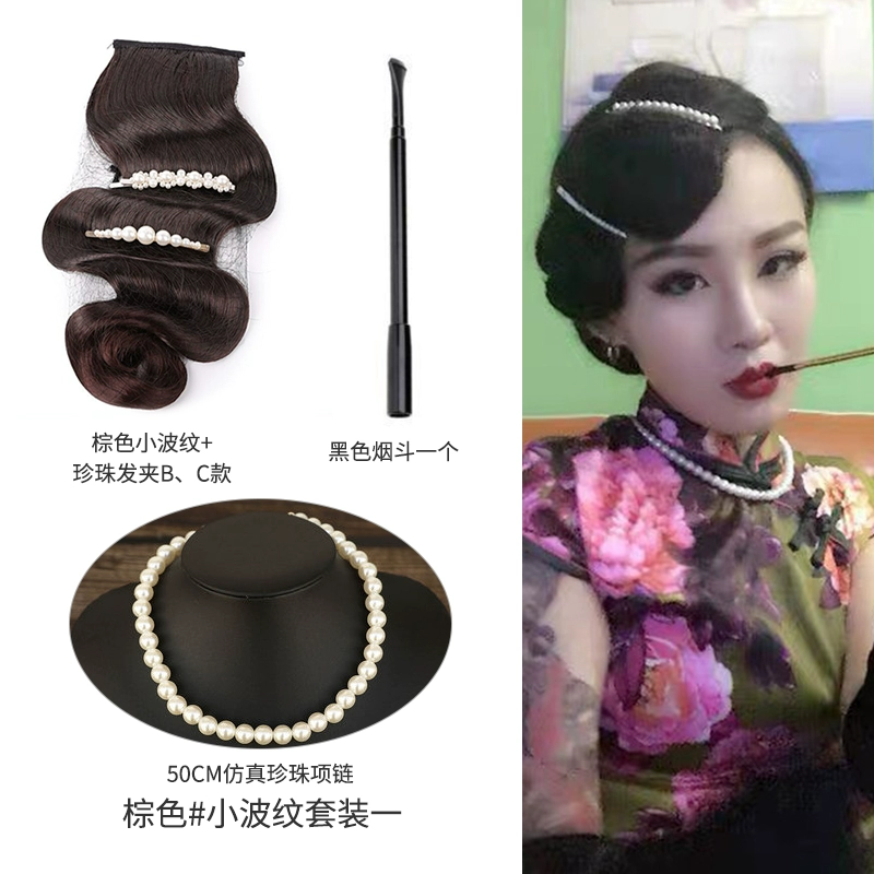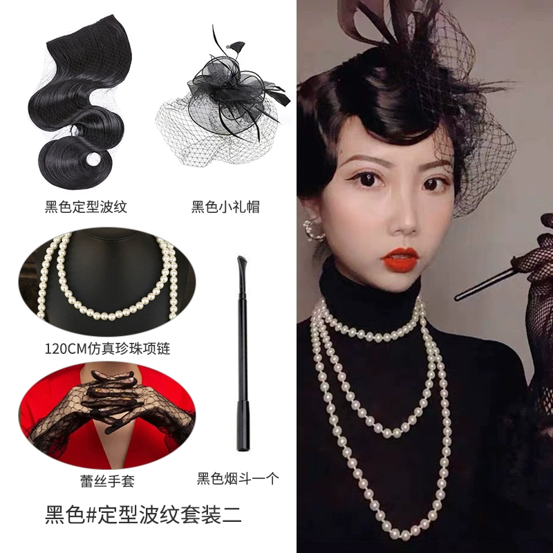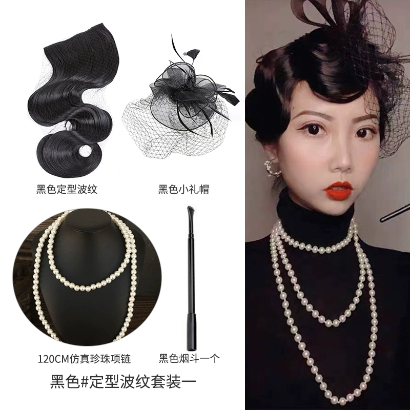 | nameOriginal | Hand pushed corrugated vintage pearl necklace earrings wig |