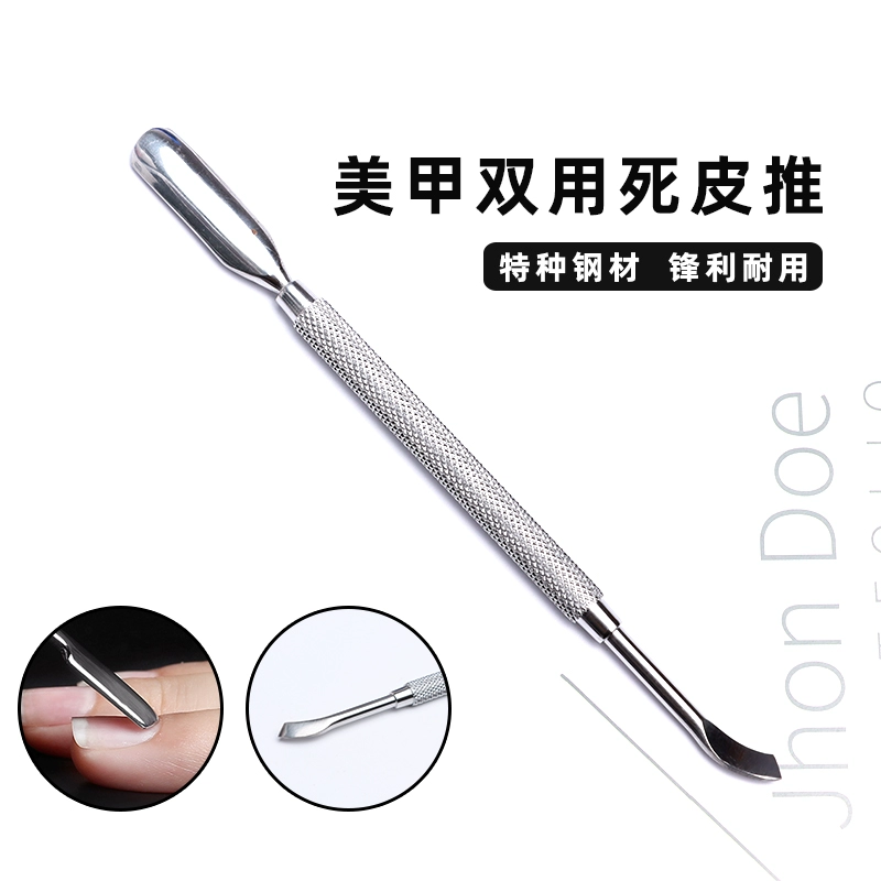 Hand trimming, exfoliating, wear-resistant steel push manicure tool with double heads