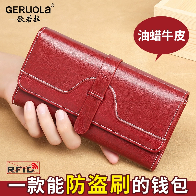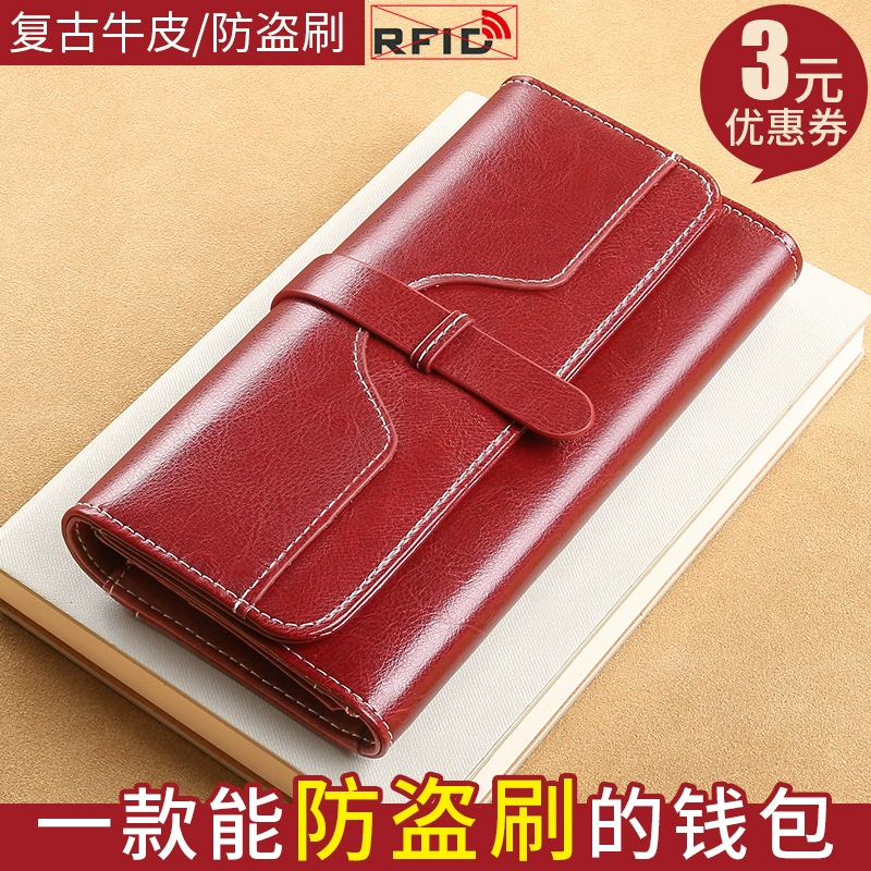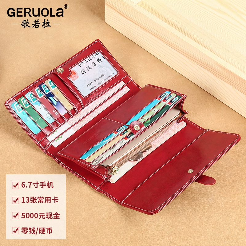 Hand wallet for women, long genuine leather, simple and versatile, large-capacity card holder, one-piece soft leather multi-card function wallet