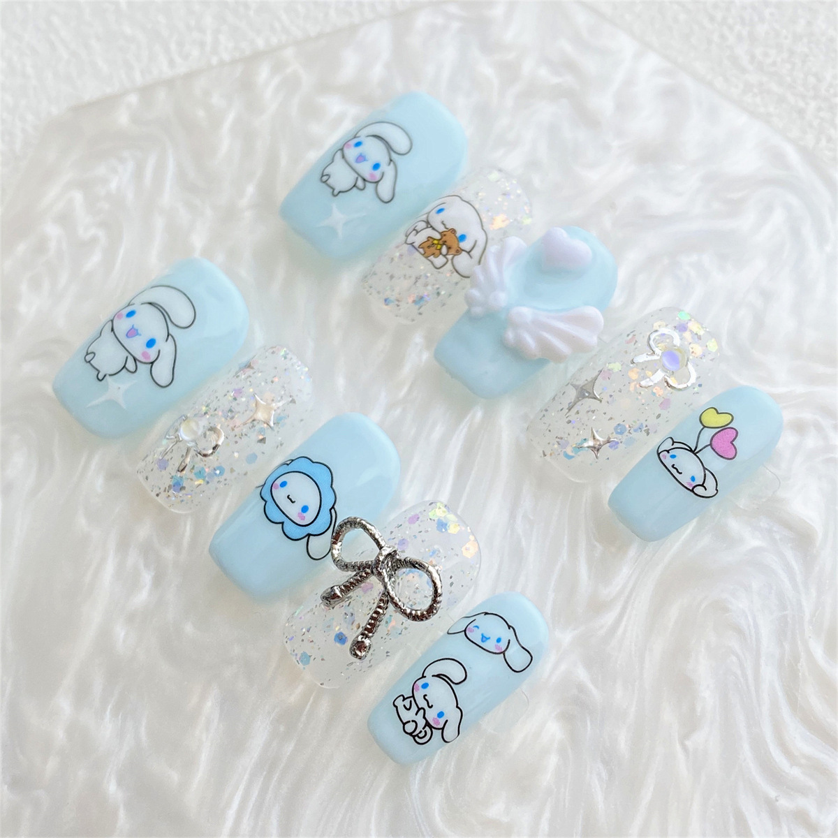 | nameOriginal | Hand-worn Jade Gui Dog Simple Bow Wings Flash Foil Love All-match Nail Patch Fake Nail Original |
