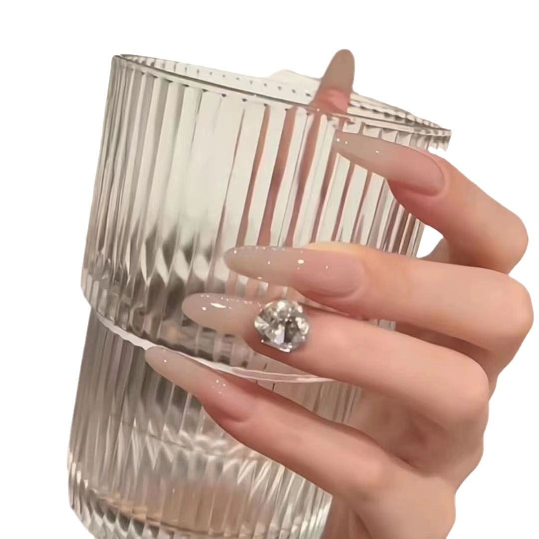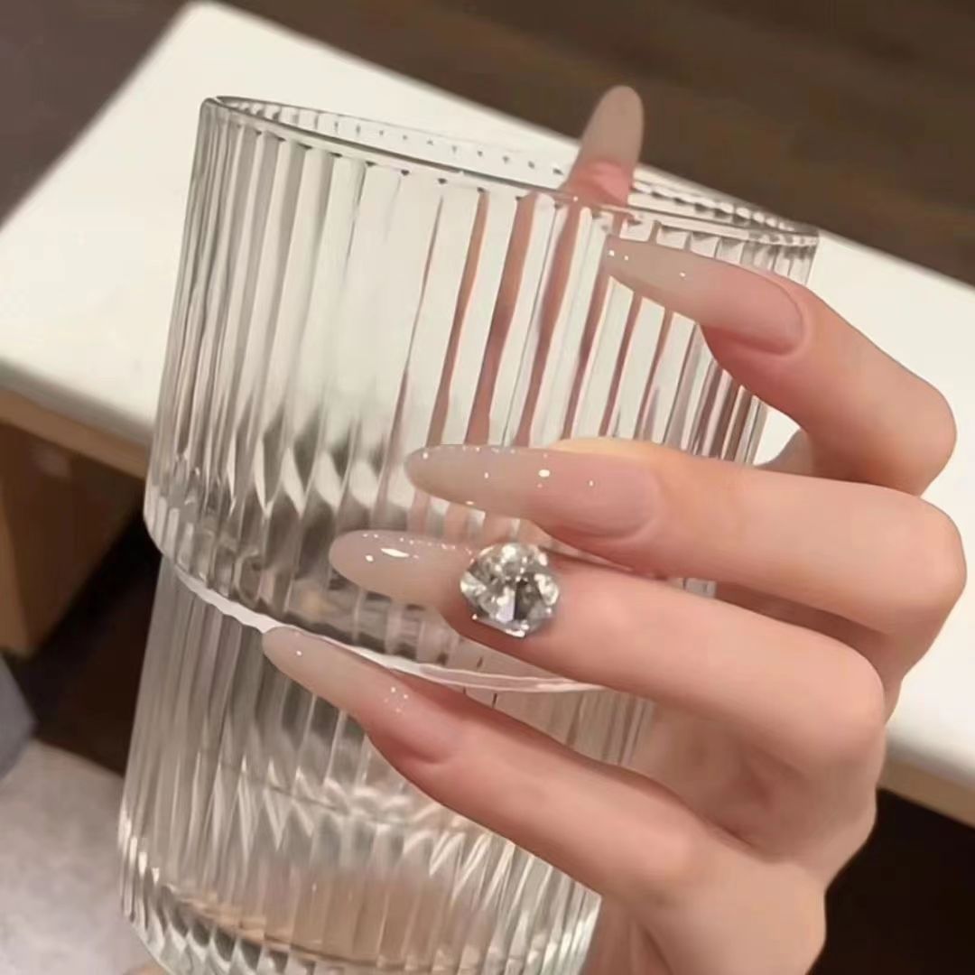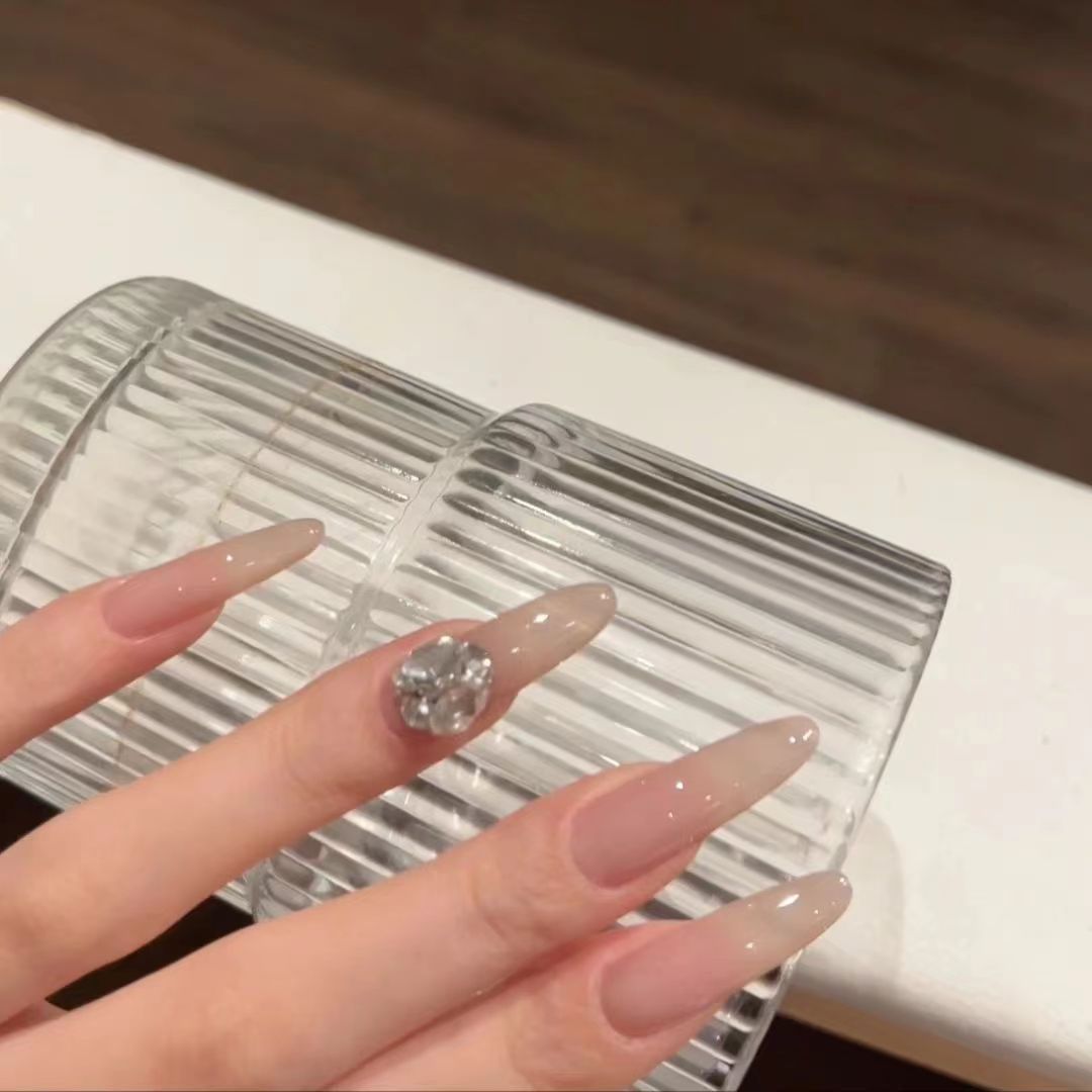 | nameOriginal | Hand-worn nail ice transparent nude k9 flash diamond ball finished nail art patch naturally white medium and long wedding photos |