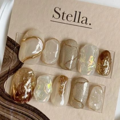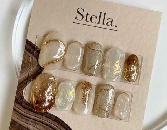 Hand-worn nails, fake nails, phototherapy, finished ins Maillard hot latte autumn and winter manicure