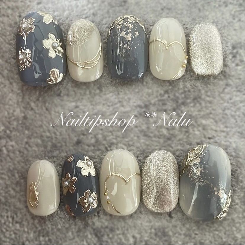 | nameOriginal | Hand-worn nails, fake nails, phototherapy nails, finished gilt retro high-end hand-painted navy blue whitening autumn and winter manicure |