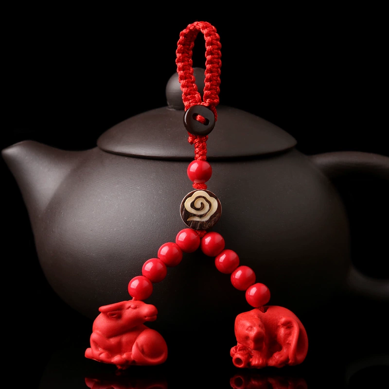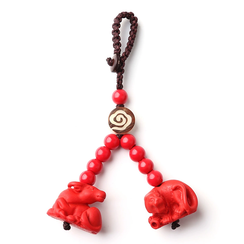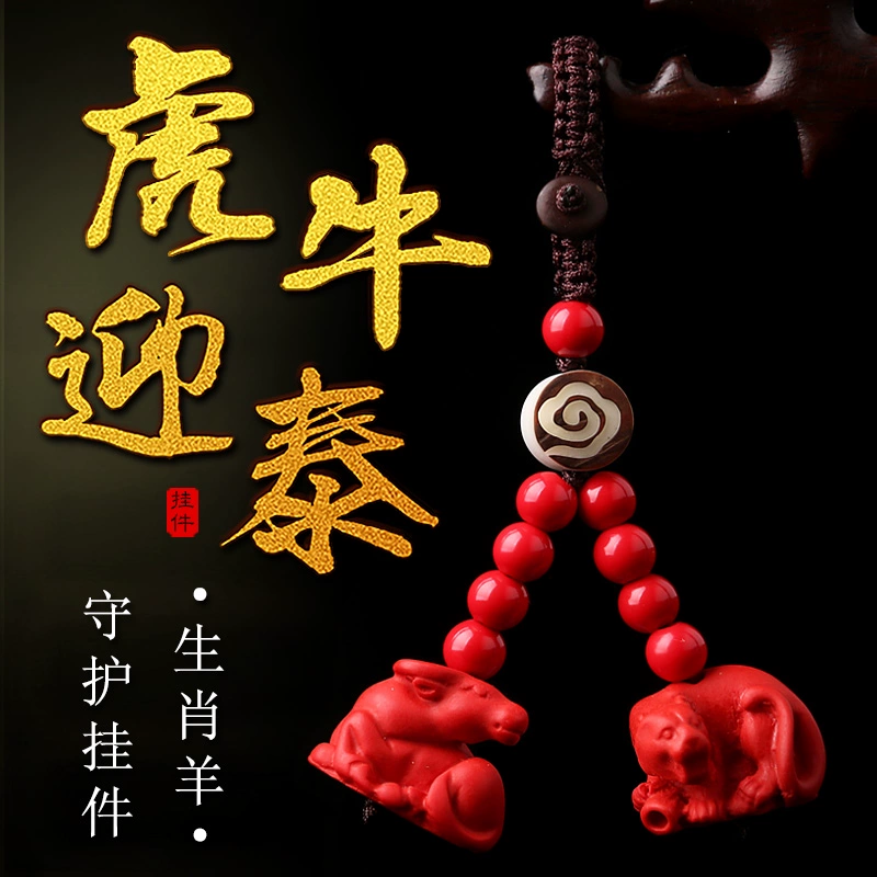 | nameOriginal | Hand-woven 2024 zodiac sheep mascot tiger and cow Yingtai peach wood containing cinnabar key chain pendant pendant |