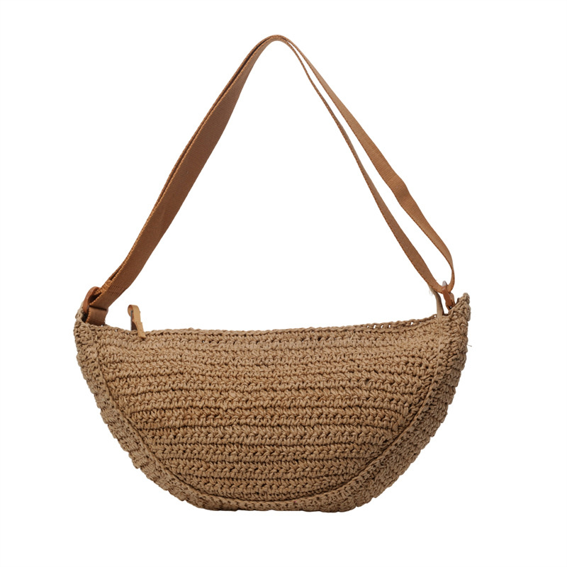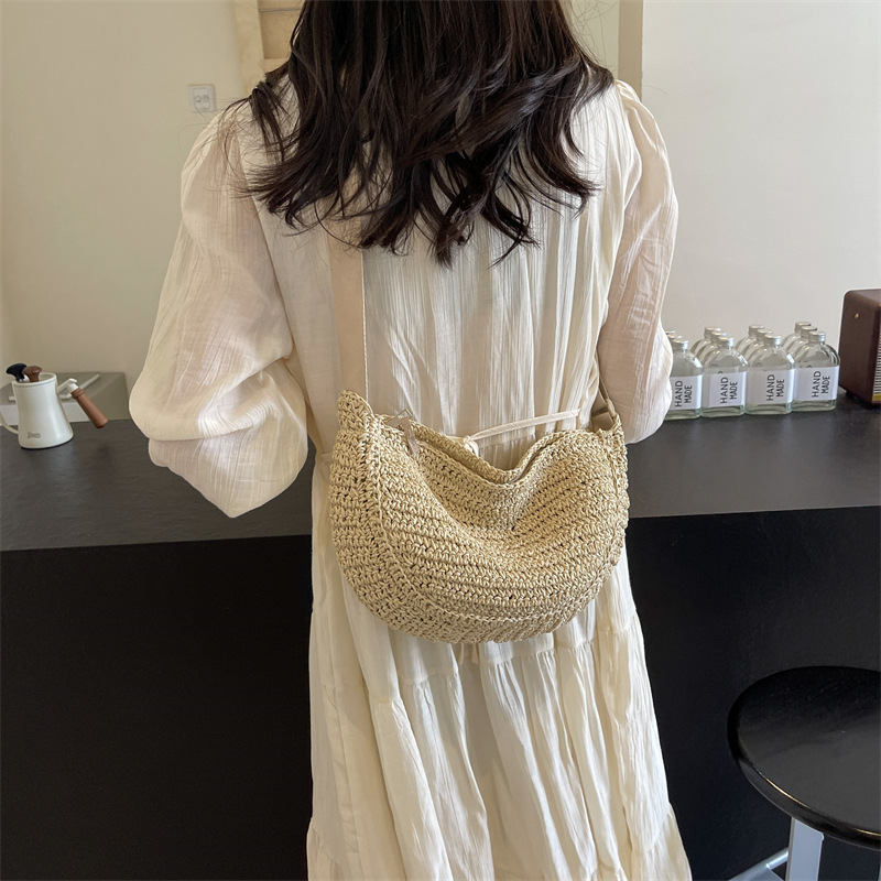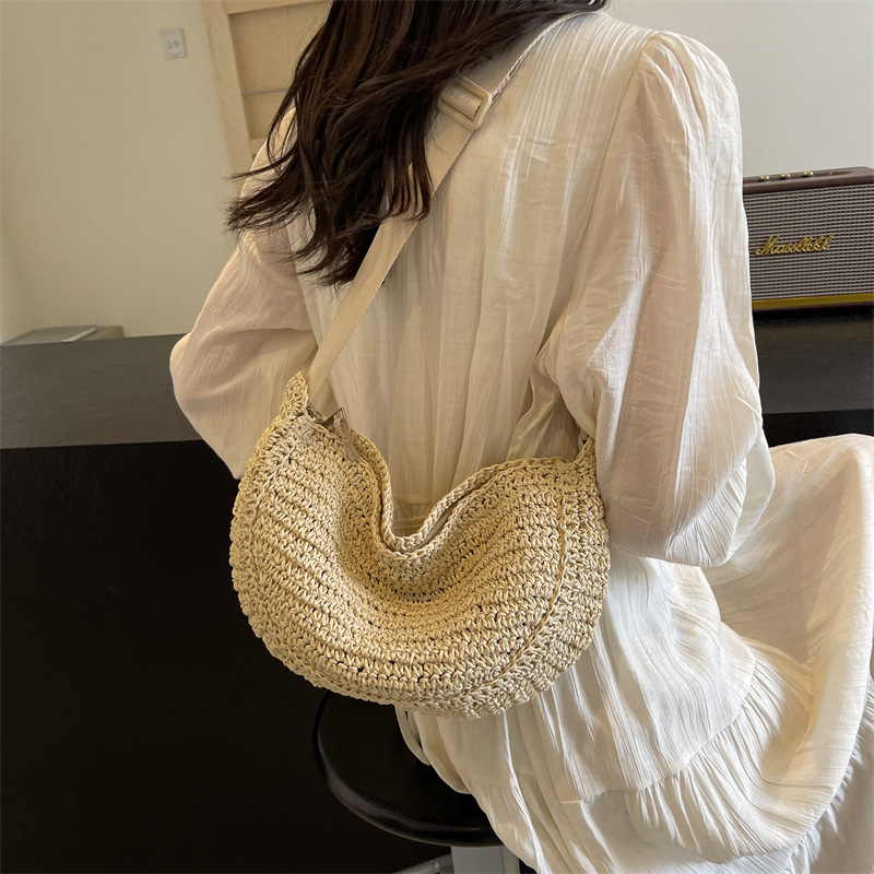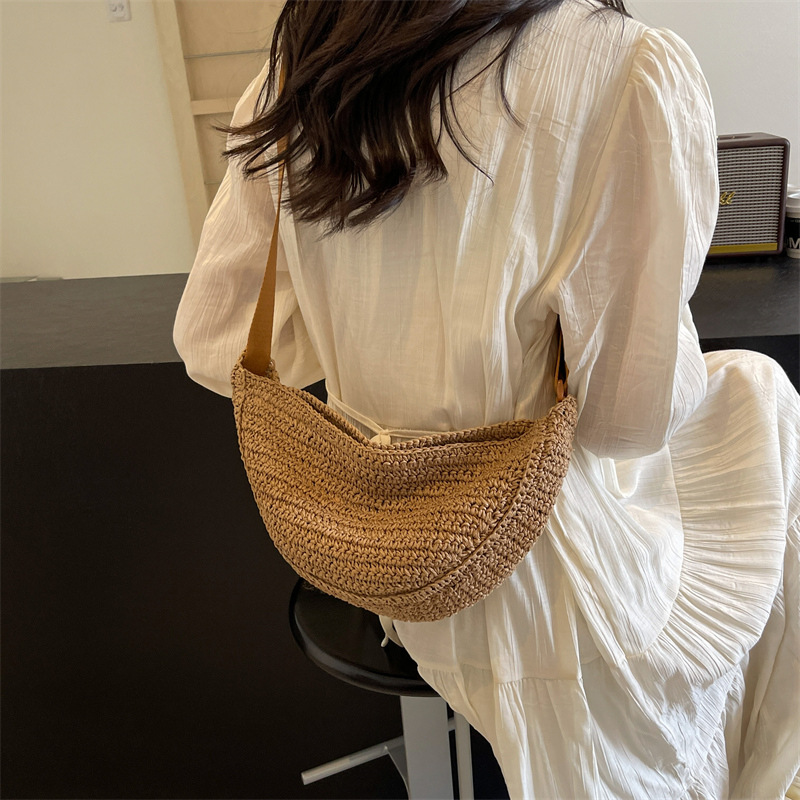 Hand Woven Crossbody Bag Shoulder Underarm Semi-round Bag 2024 New Simple Fashion Straw Beach Bag Crossbody Bag