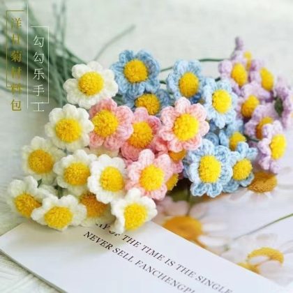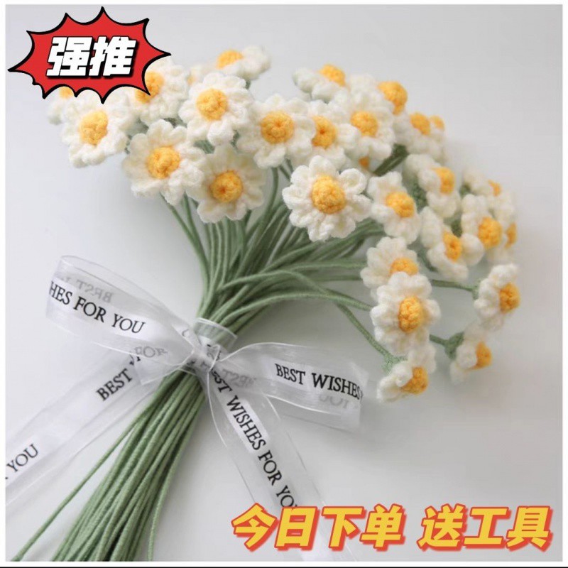 Hand-woven daisy chamomile wool bouquet crochet diy material bag finished products for men and women girlfriends gift