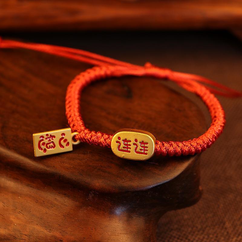 Hand-woven ethnic style good luck red rope adjustable hand rope ancient gold college entrance examination lucky bracelet student gift