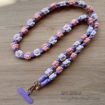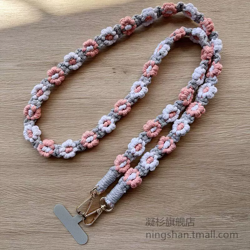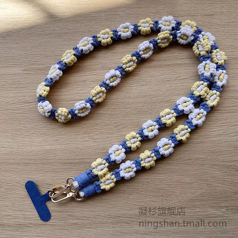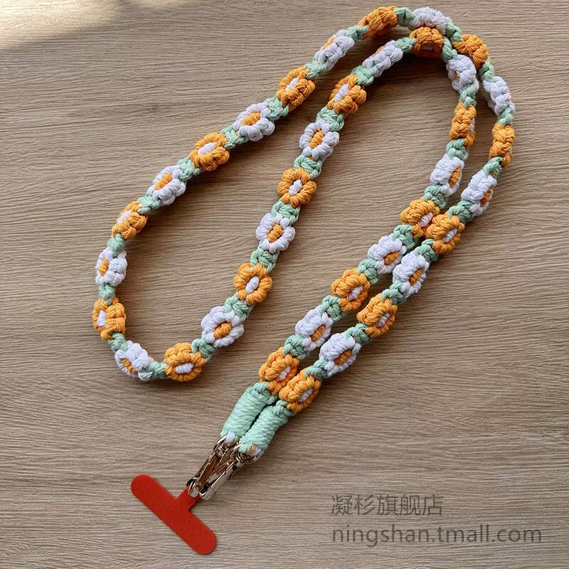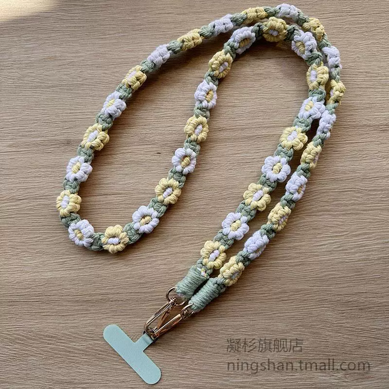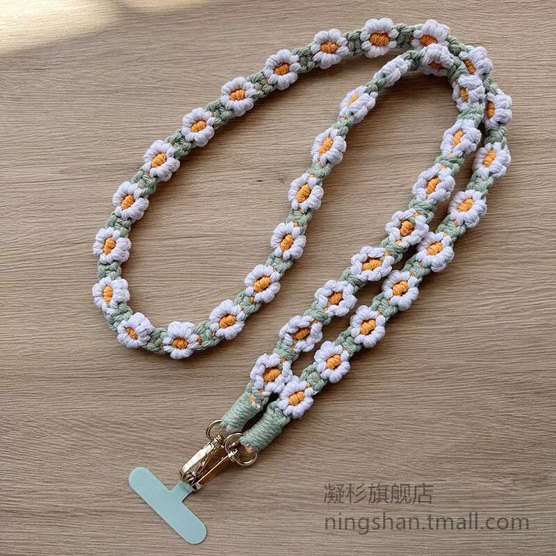 | nameOriginal | Hand-woven mobile phone lanyard cross-body can carry small daisy flowers wool back rope anti-lost wide version backpack phone high-end strap bag replacement strap pendant card clip patch women anti-lost |