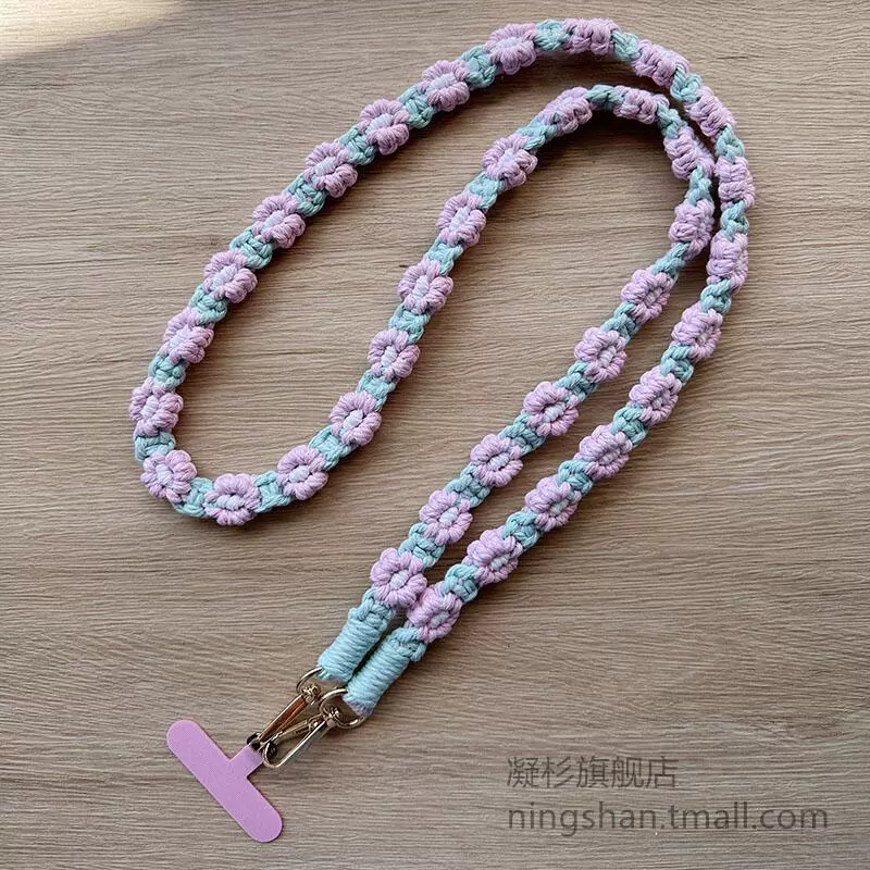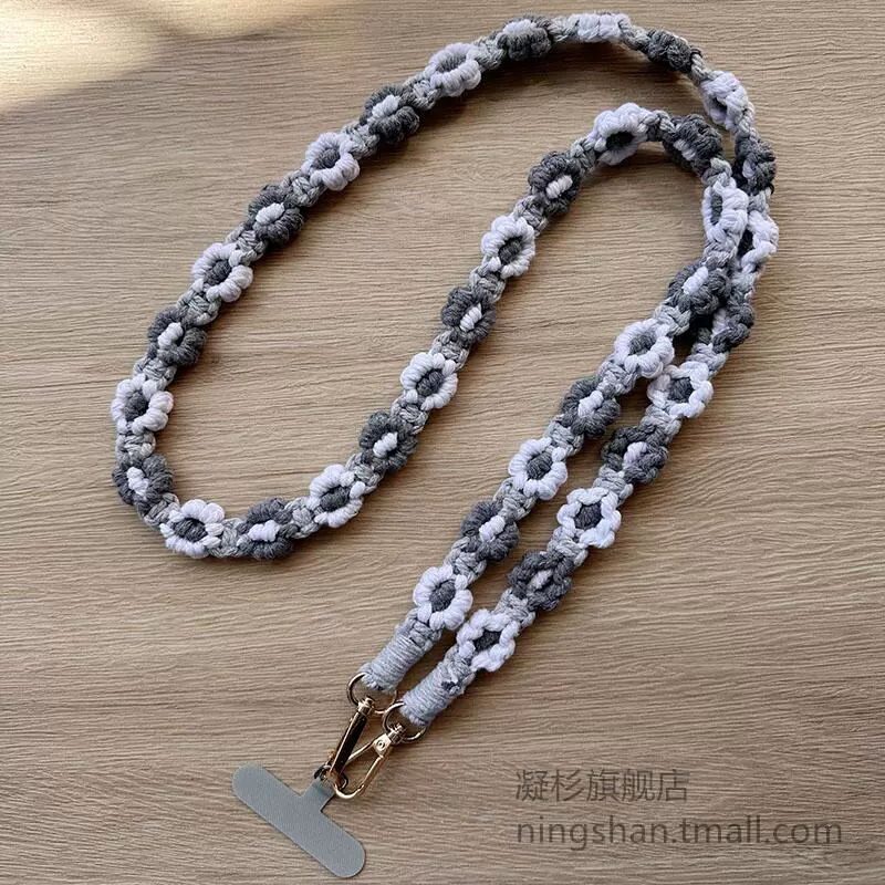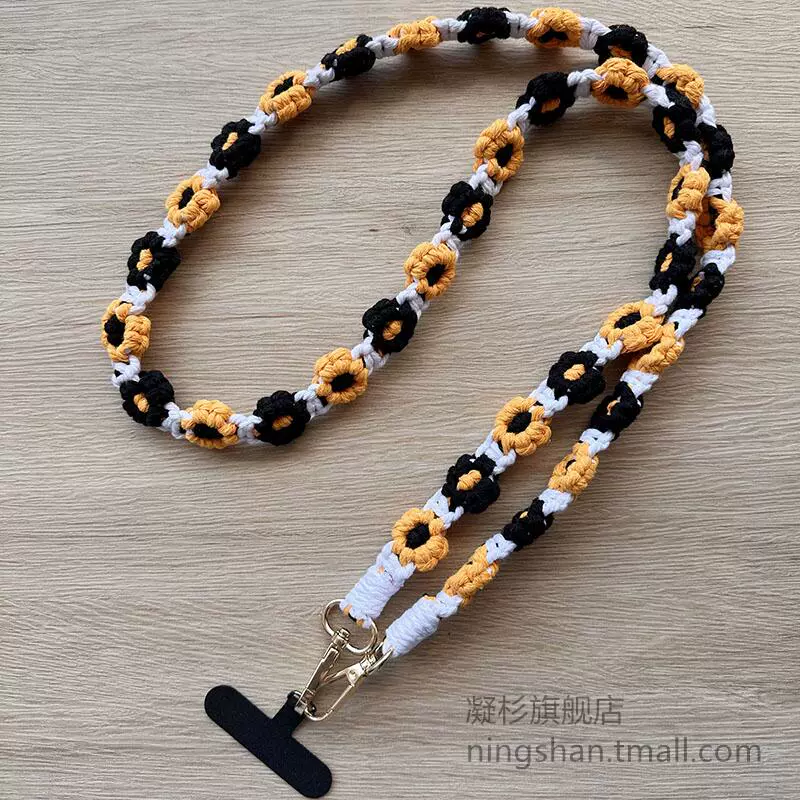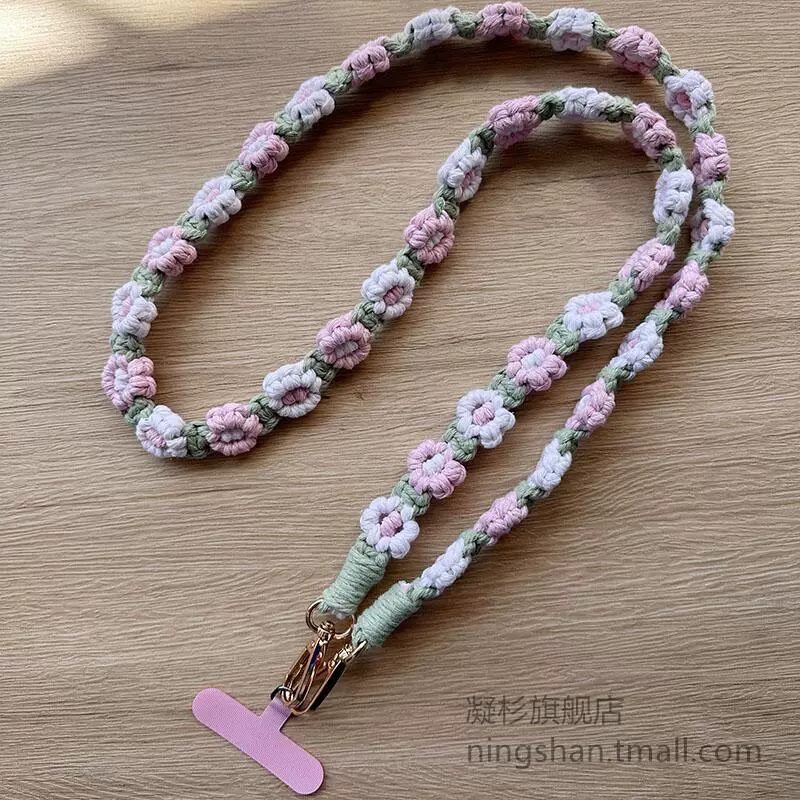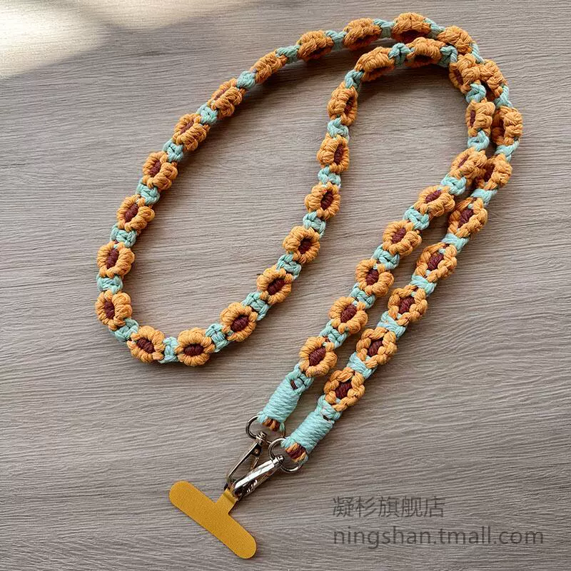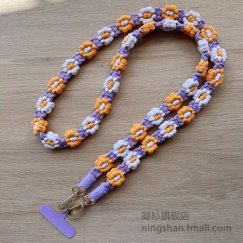 | nameOriginal | Hand-woven mobile phone lanyard cross-body can carry small daisy flowers wool back rope anti-lost wide version backpack phone high-end strap bag replacement strap pendant card clip patch women anti-lost |