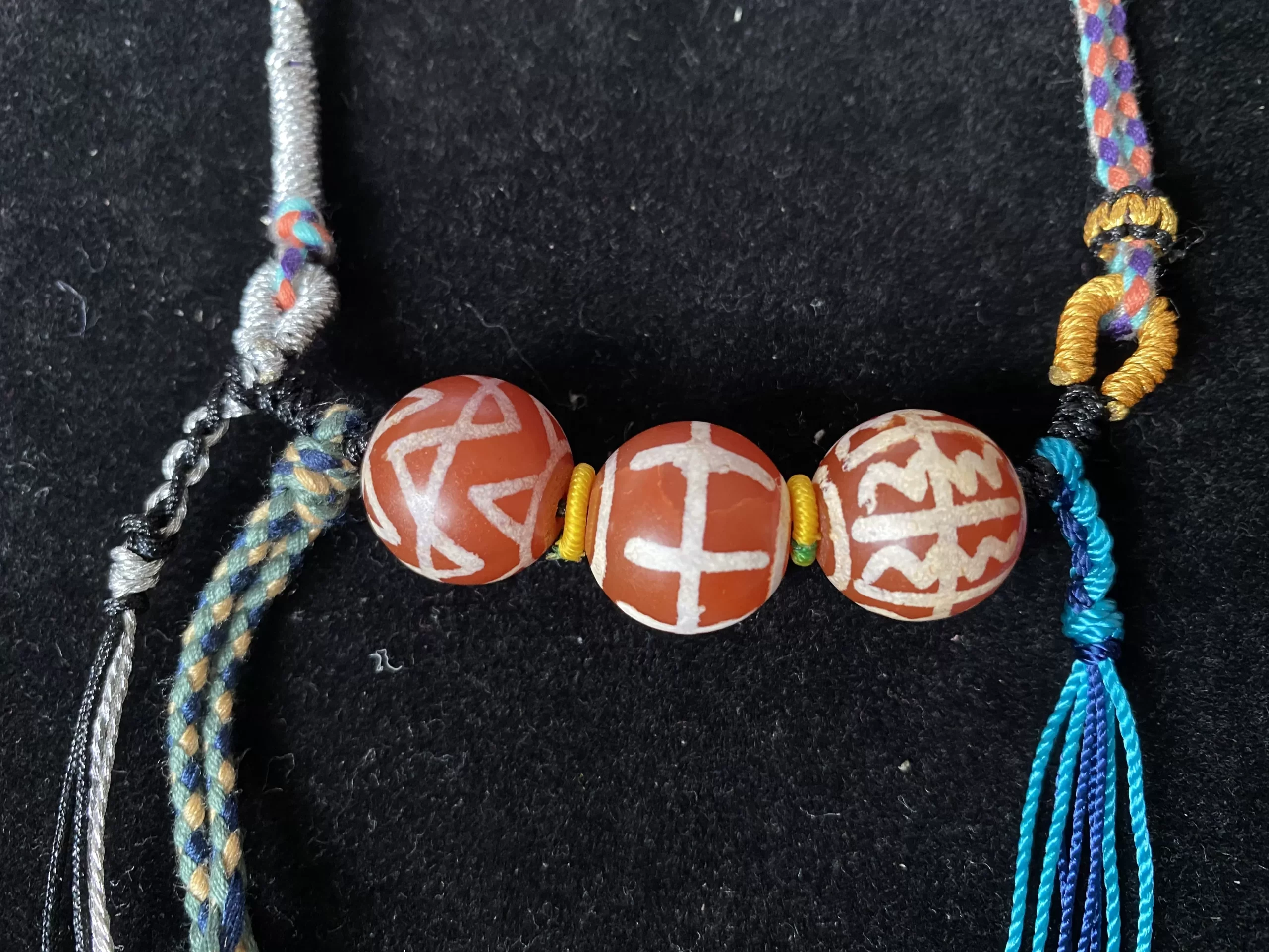 | nameOriginal | Hand-woven rope Bontique carnelian inlay amazonite beeswax turquoise dzi beads tassel necklace |