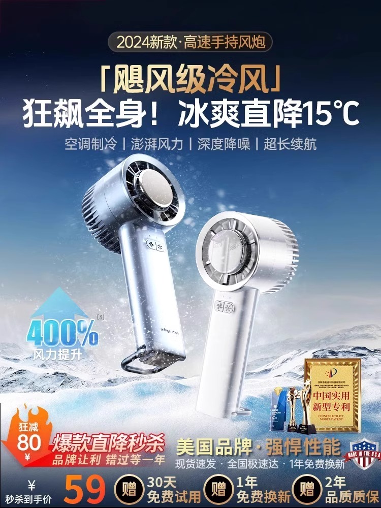 Handheld small fan 2024 new silent mini mini turbo semiconductor refrigeration violence fan student children