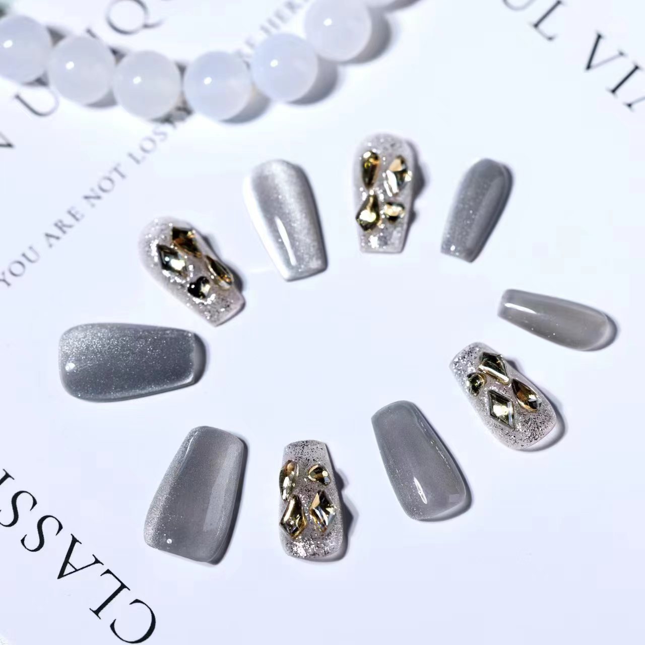 | nameOriginal | Handmade Armor Light Luxury Autumn and Winter Champagne Flash New Style Flash Diamond Nail Art Elegant High-end Nail Art |