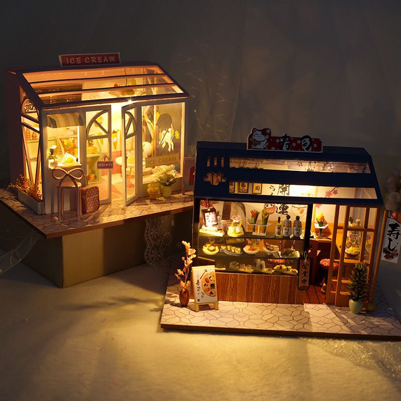 | nameOriginal | Handmade Assembled House Model DIY Cabin Accompanying Gift Japanese-style Sushi Restaurant Birthday Toys for Girls and Boys |