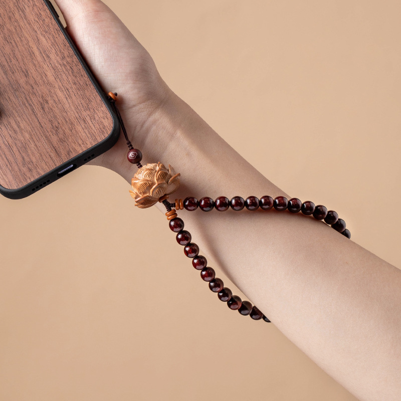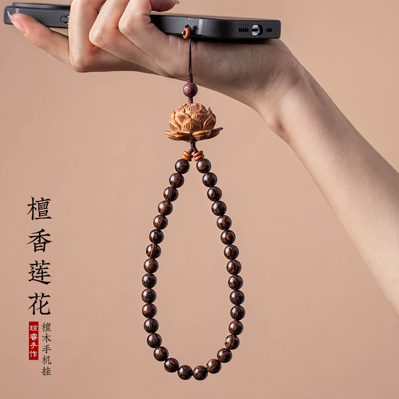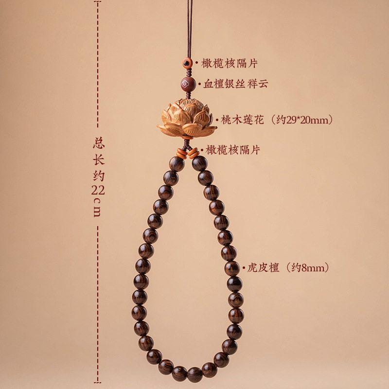 | nameOriginal | Handmade Chinese style mobile phone lanyard men's and women's wrist short anti-lost chain peach Lotus sandalwood personality |