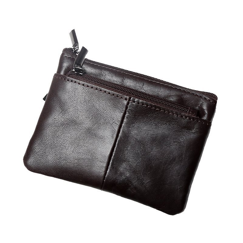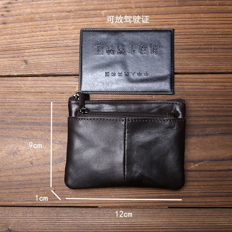 Handmade Genuine Leather Small Coin Purse Business Card Bag Top Layer Cowhide Simple Zipper Driver's License Bag Bus Card Key Bag