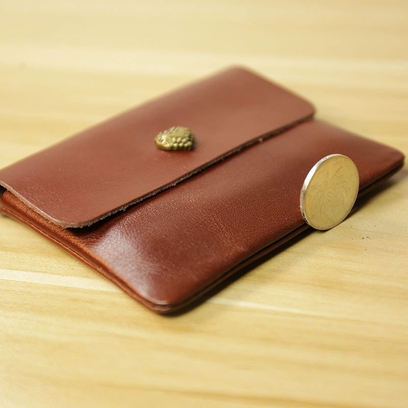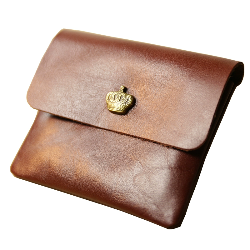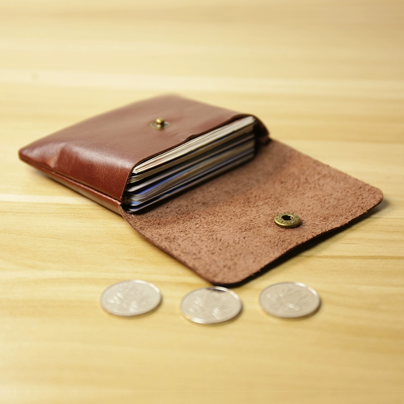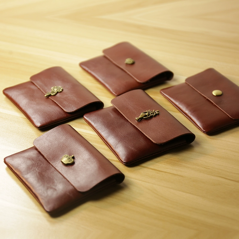 Handmade genuine pickup bag, business card bag, first-layer cowhide small wallet, retro buckle driver's license coin purse