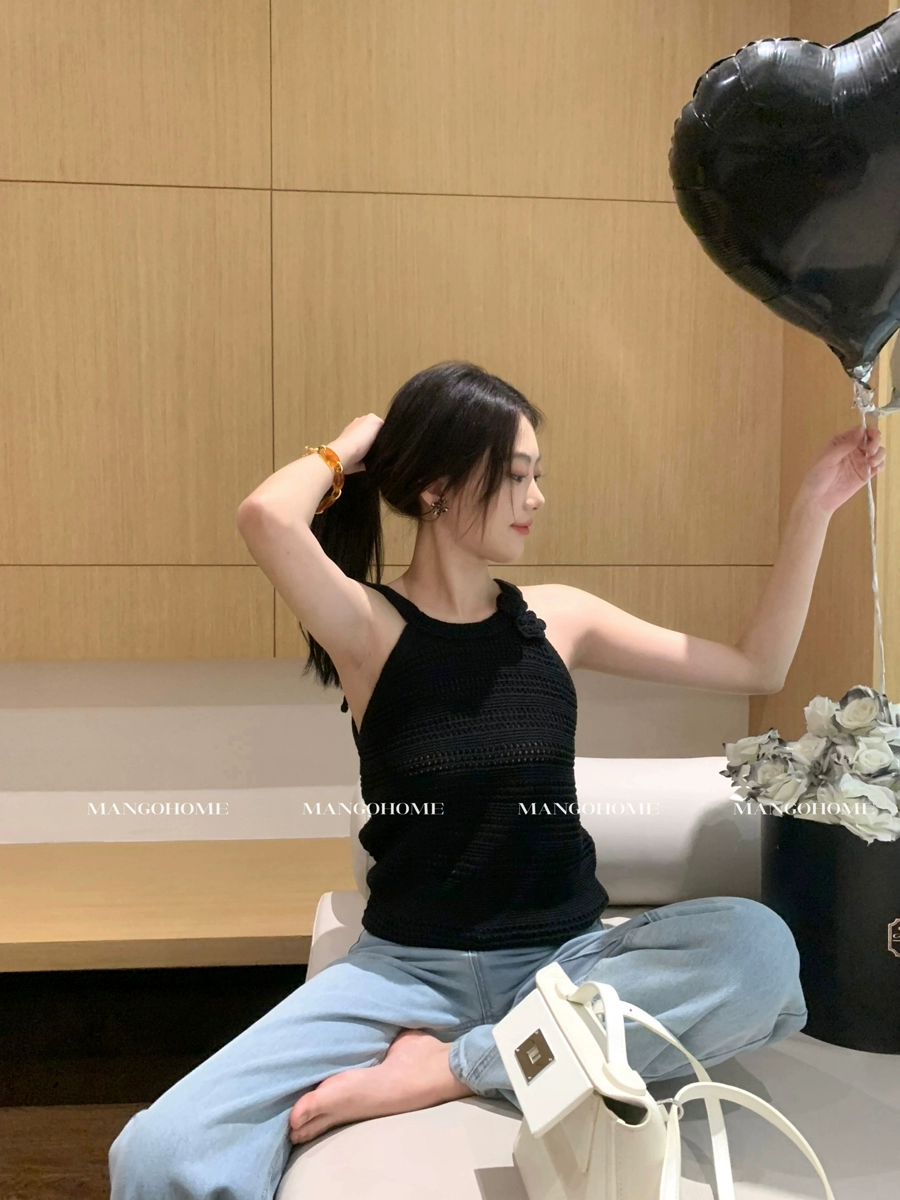 | nameOriginal | Handmade halter neck strap French style sleeveless camellia |