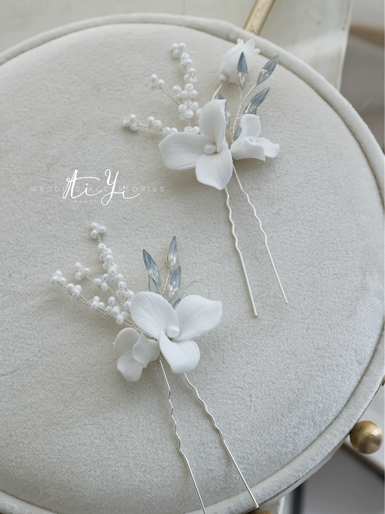 | nameOriginal | Handmade ins style white ceramic flowers embellish the bridal headdress, hair fork, hairpin, rice beads, beautiful flower decoration |