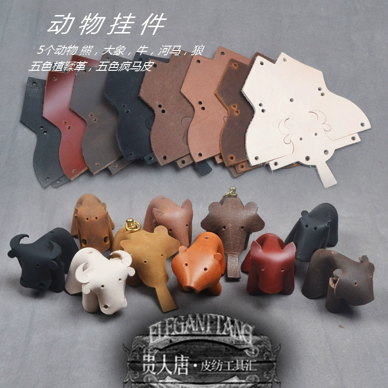 | nameOriginal | Handmade leather goods DIY cowhide accessories pendant animal pendant material package elephant cow bear wolf hippopotamus 5 animals |
