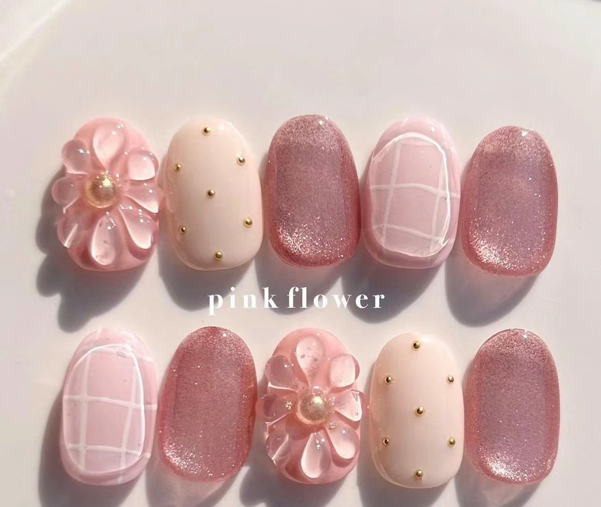 | nameOriginal | Handmade manicure finished Japanese style ins pink flower light therapy manicure commuting manicure Japanese style wear manicure |