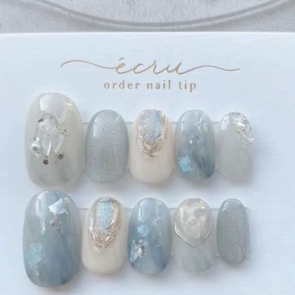 | nameOriginal | Handmade manicure finished product, hand-painted Japanese crystal blue, clear and smudged spring and summer style manicure, light therapy manicure |