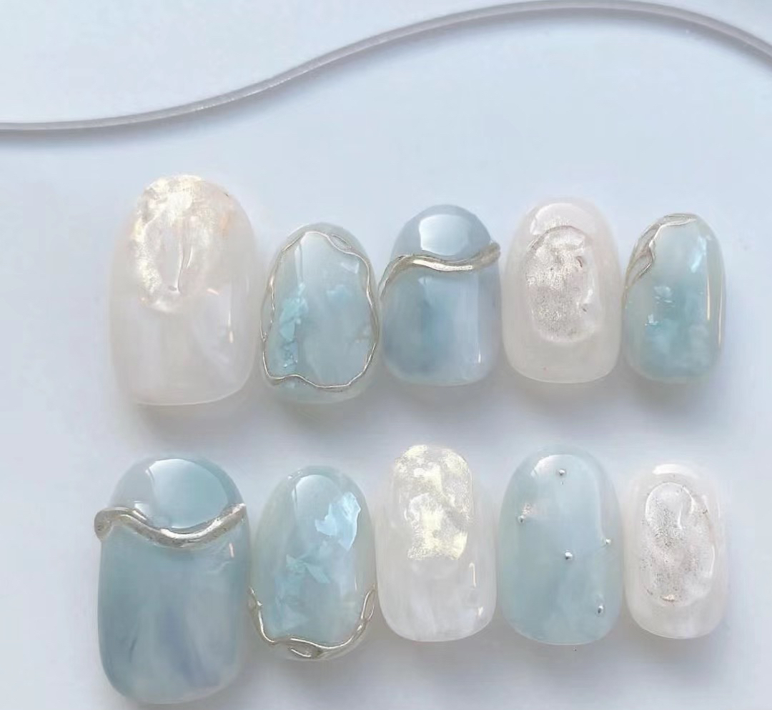 | nameOriginal | Handmade manicure finished product Japanese ins summer light blue light manicure commuting manicure Japanese wear manicure |
