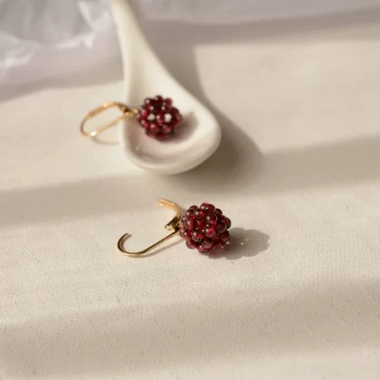 | nameOriginal | Handmade natural pearl garnet French anti-falling earrings braided flower ball earrings for women |