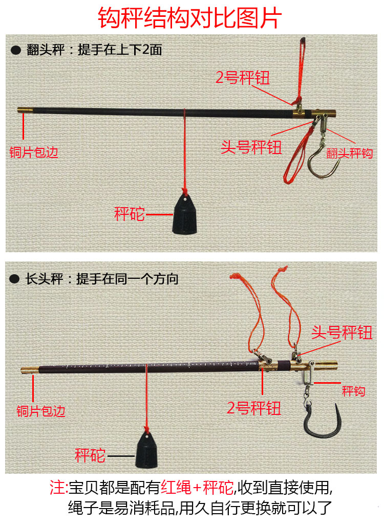 Handmade scale old-fashioned scale wooden pole scale Hook scale Xi scale portable scale wooden pole old hook scale wooden scale household old scale