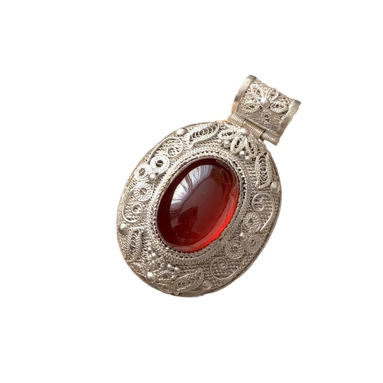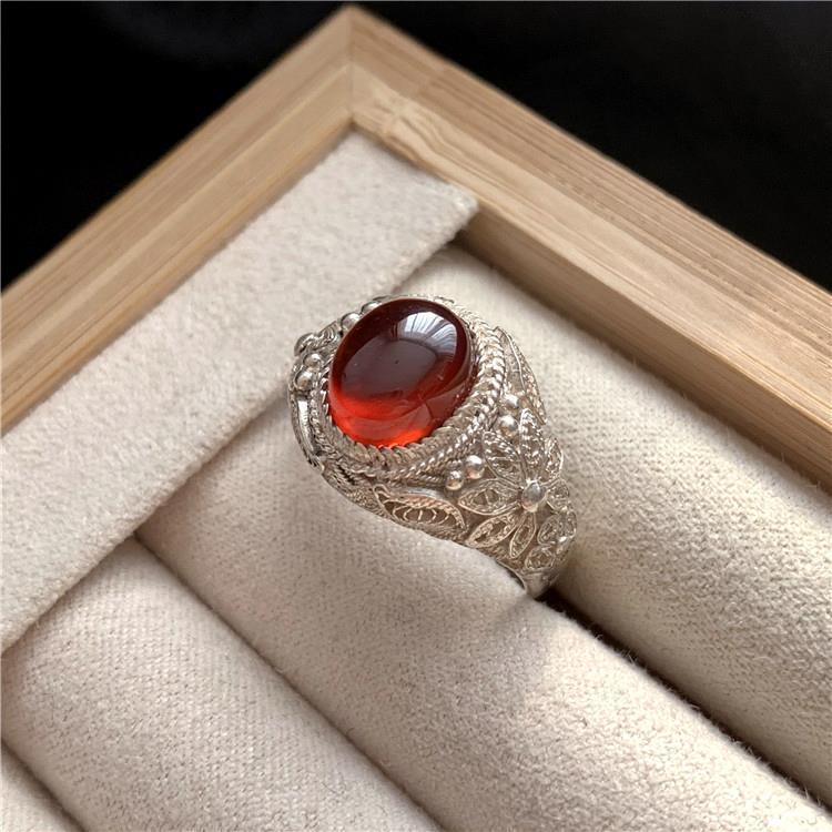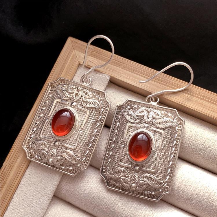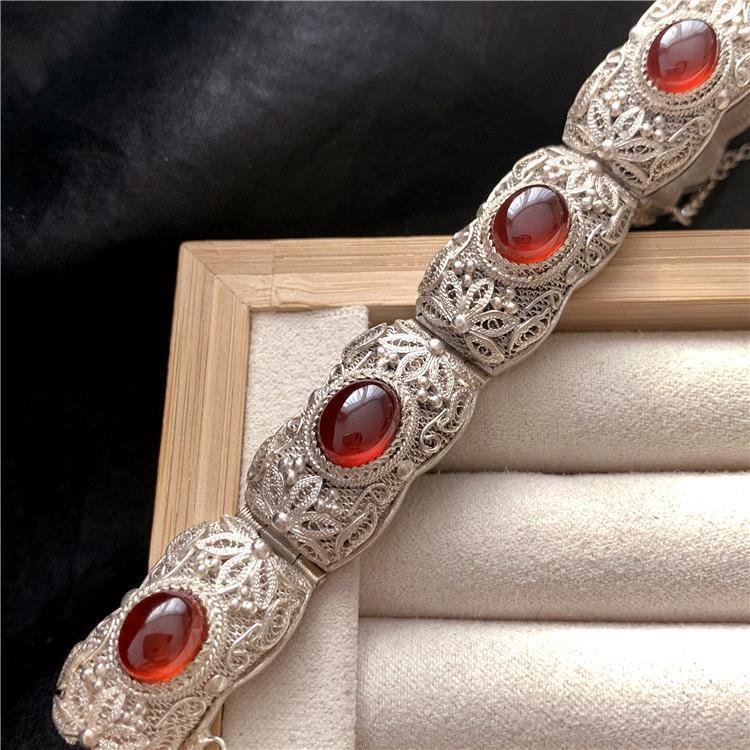 | nameOriginal | Handmade Silk inlaid red pomegranate vintage pendant ring earrings bracelet four-piece set ethnic style |