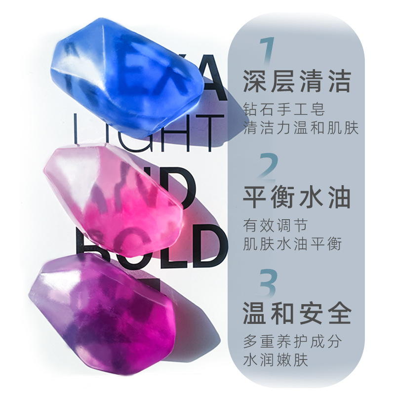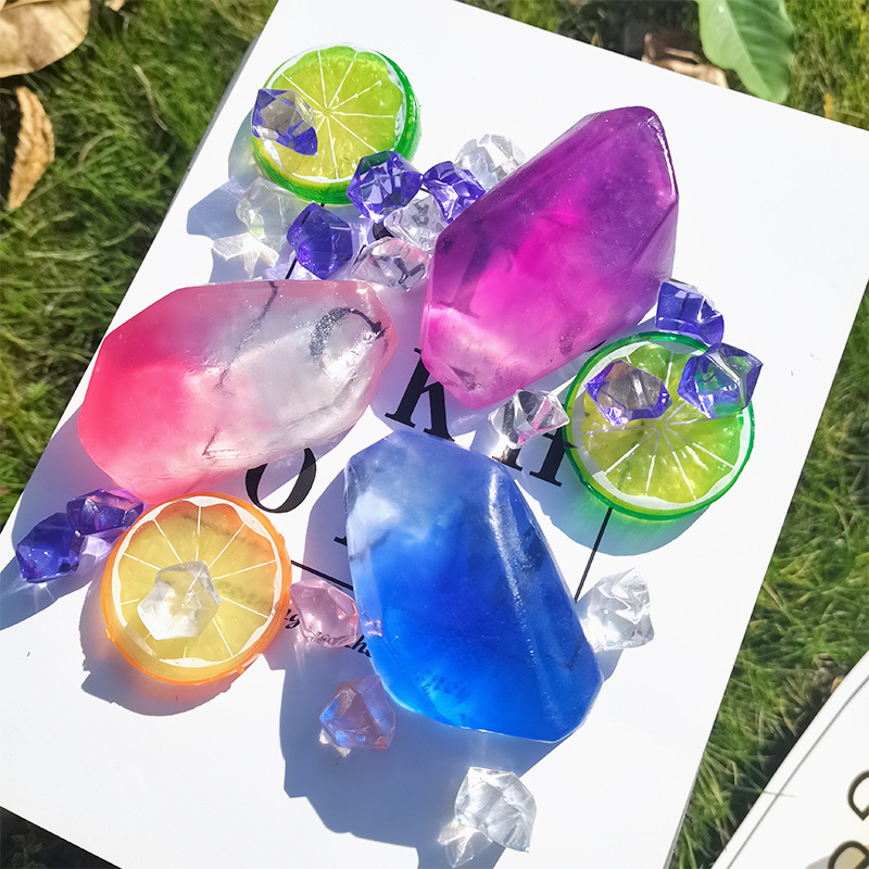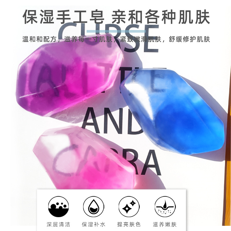 | nameOriginal | Handmade soap Diamond hyaluronic acid crystal soap two-color gradient amino acid soap factory facial essential oil soap |