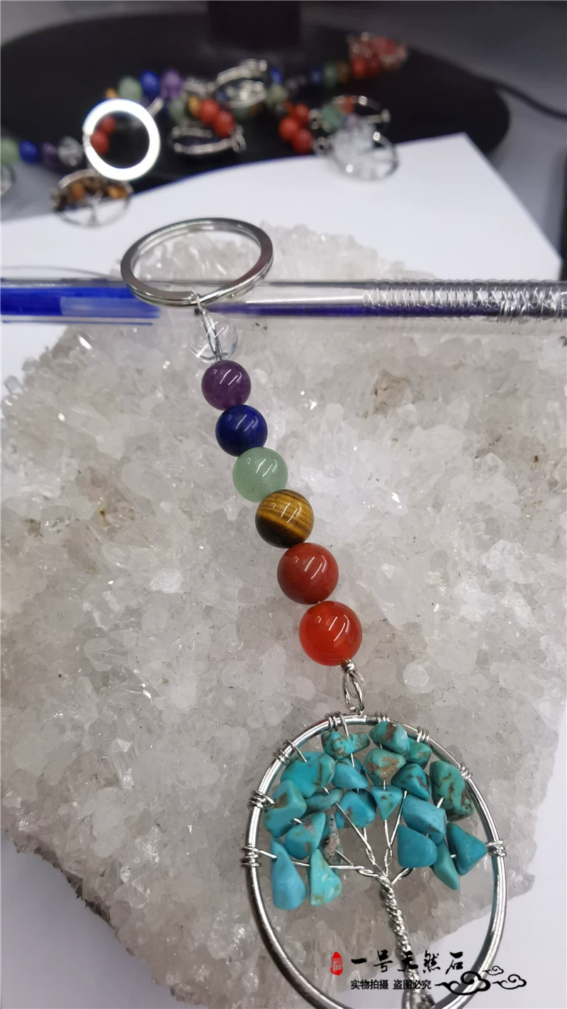 Handmade Tree of Life Keychain Backpack Gem Agate