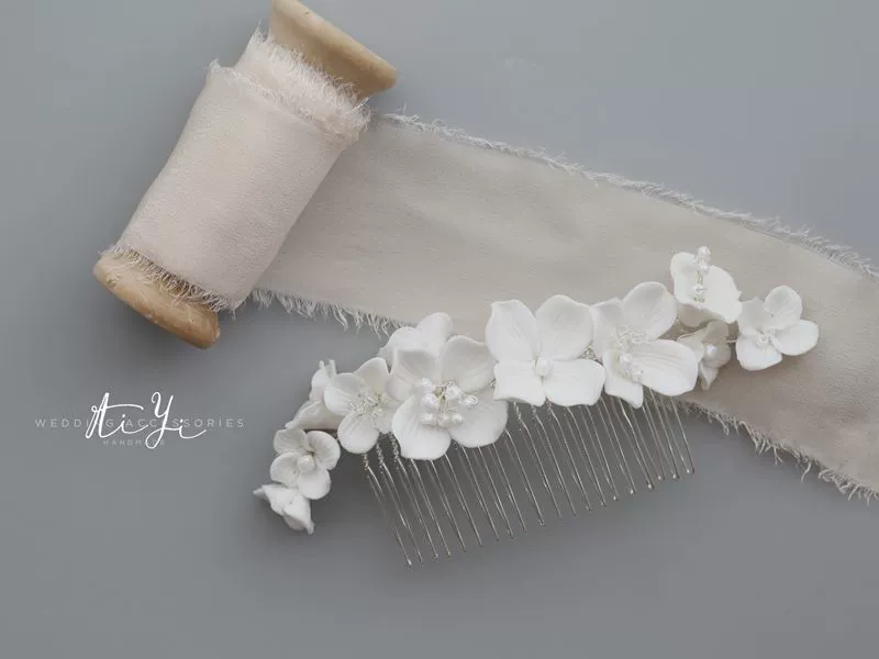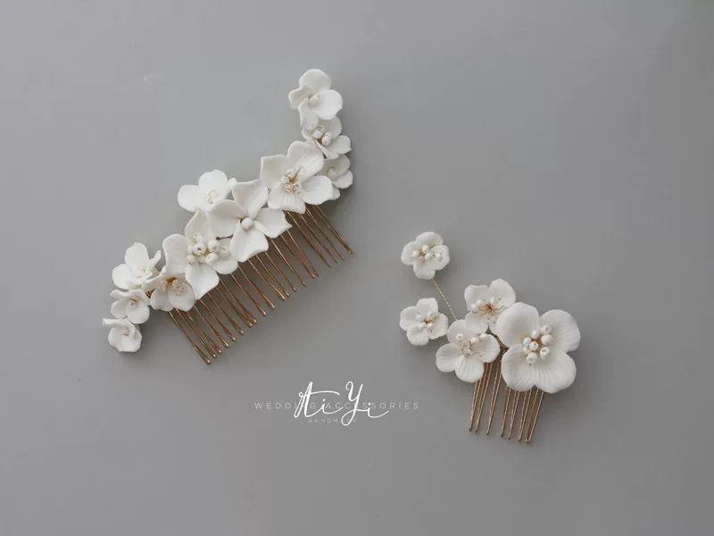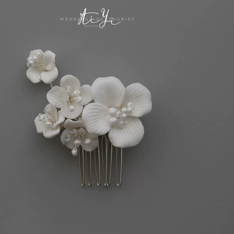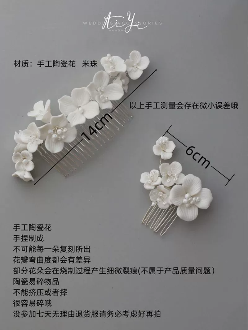 | nameOriginal | Handmade white elegant ceramic flower hair comb bridal headdress hair comb style simple wedding style Korean hair accessories |