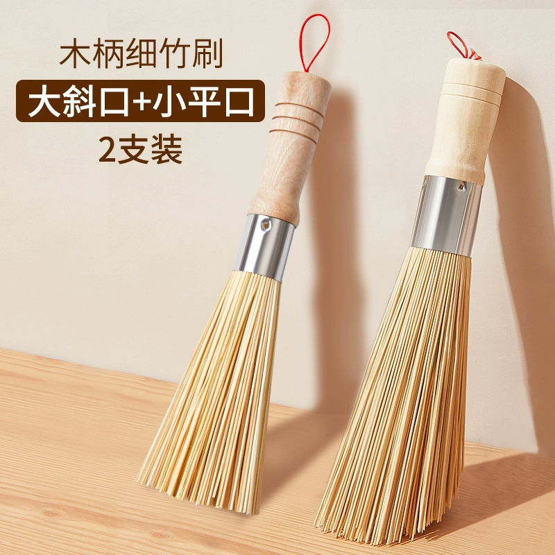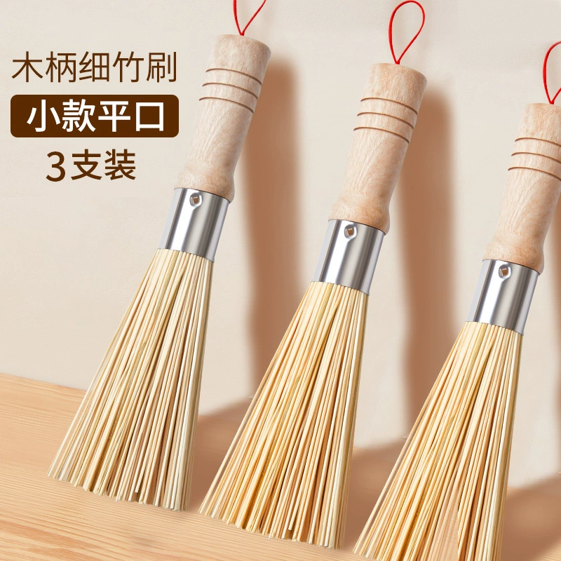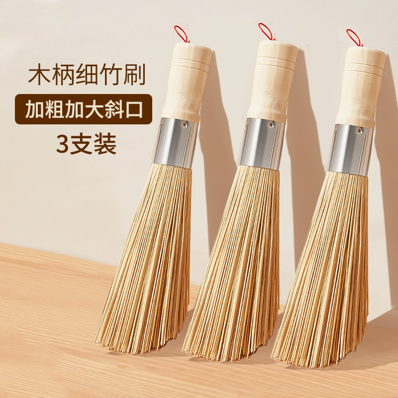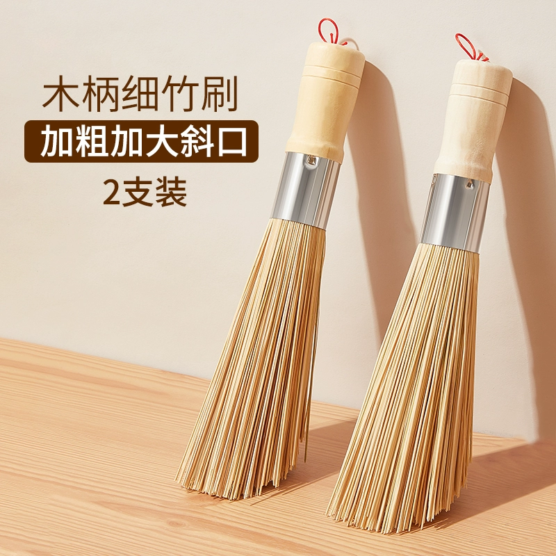 Handmade wooden handle bamboo pot brush steel ring bamboo brush rice broom kitchen broom hotel restaurant pot washing brush iron pot brush cleaning dustpan