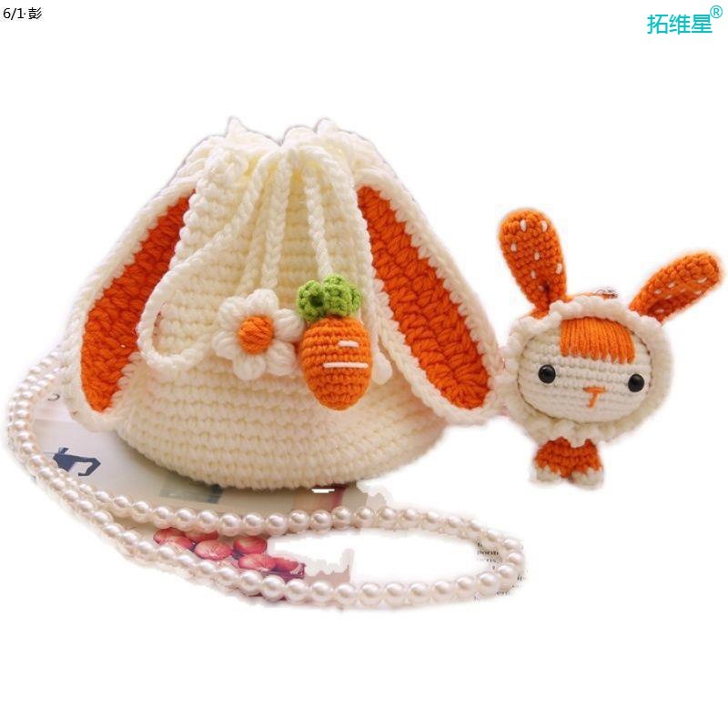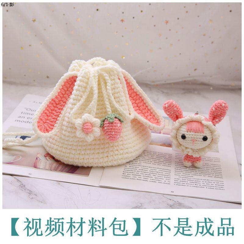 | nameOriginal | Handmade Woven Bag Strawberry Rabbit Portable Crossbody Bucket Bag Crochet Material Bag Finished Cute Homemade |