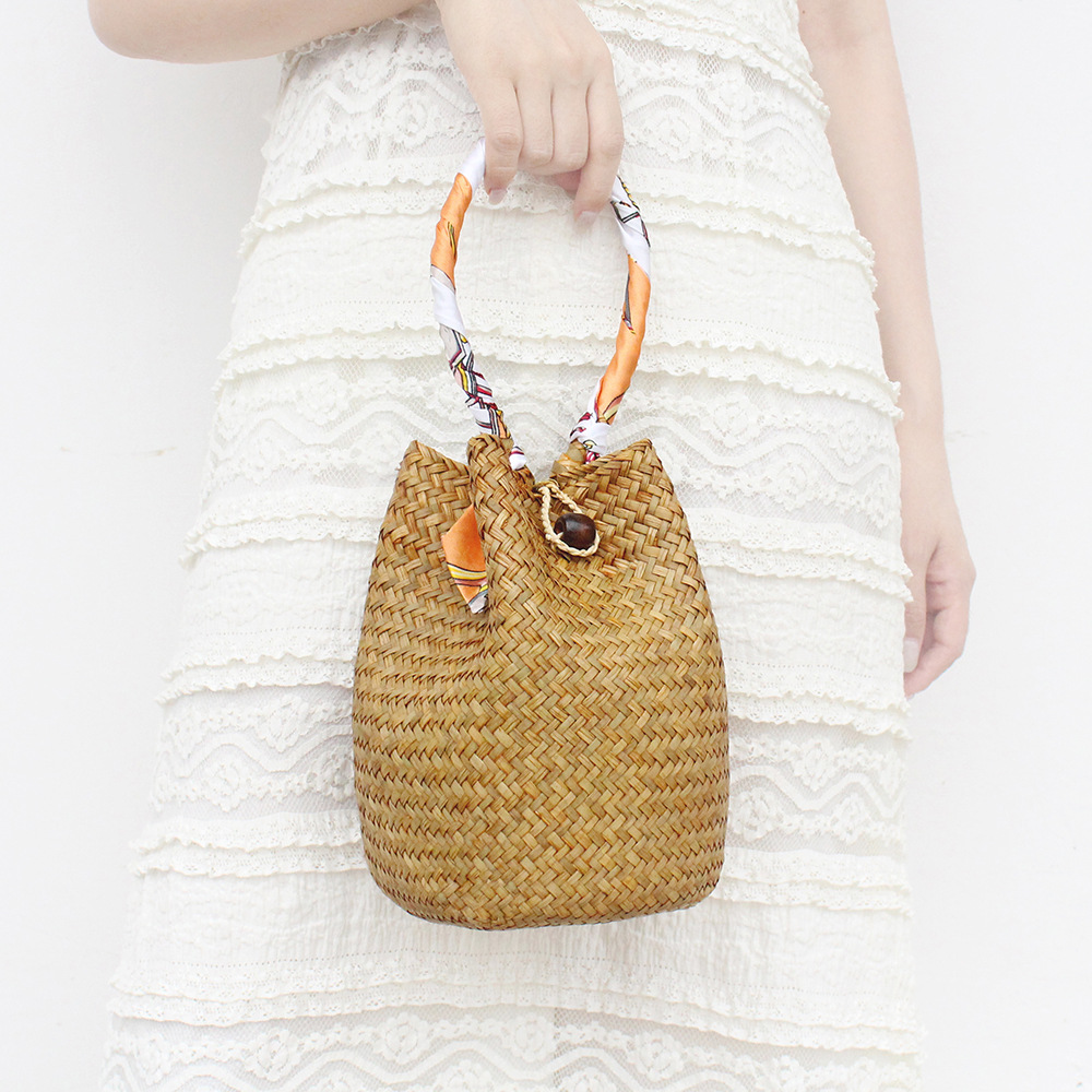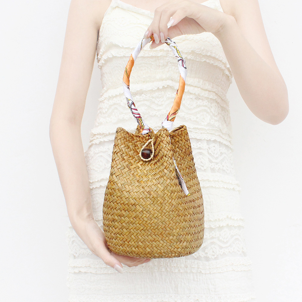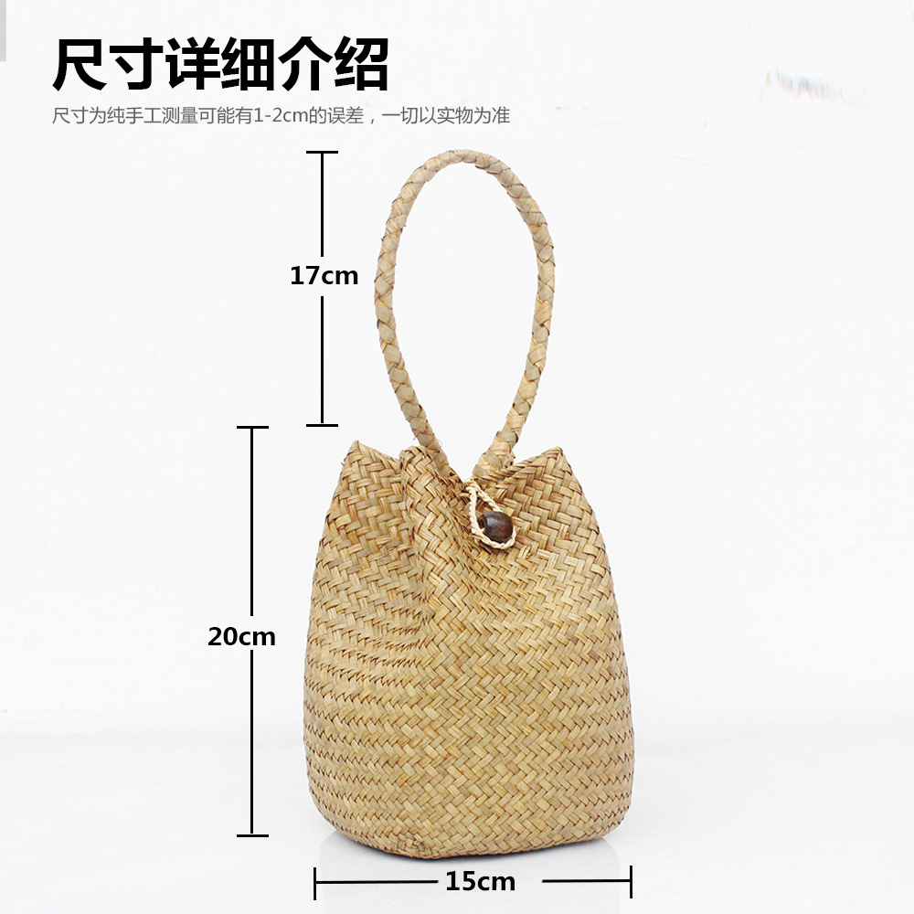 | nameOriginal | Handmade Woven Screw Bucket Bag Thai Bucket Handbag French Shoulder Straw Woven Bag Tassel Bag Beach Vacation Women's Bag |