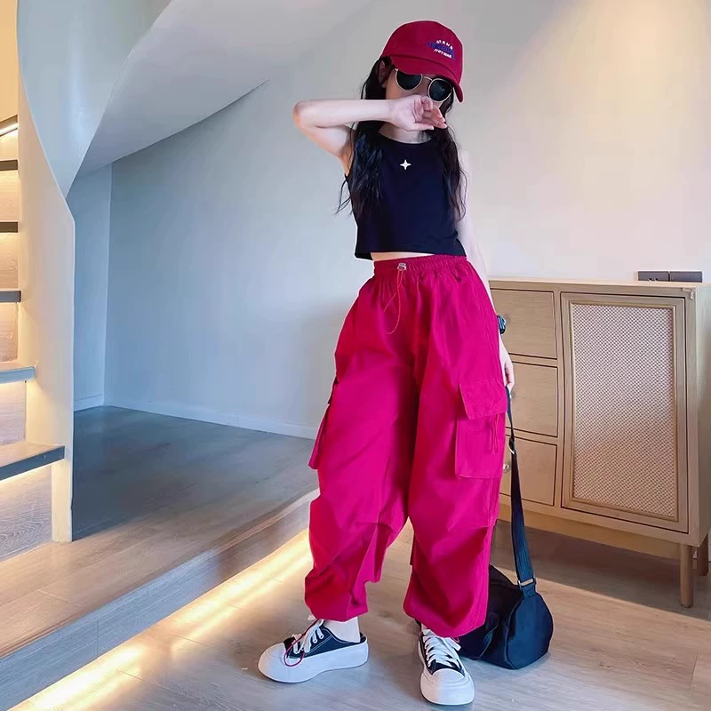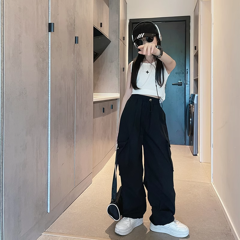 Handsome and fashionable girls' summer black pants for older children