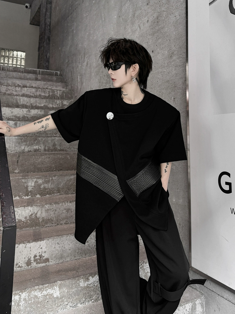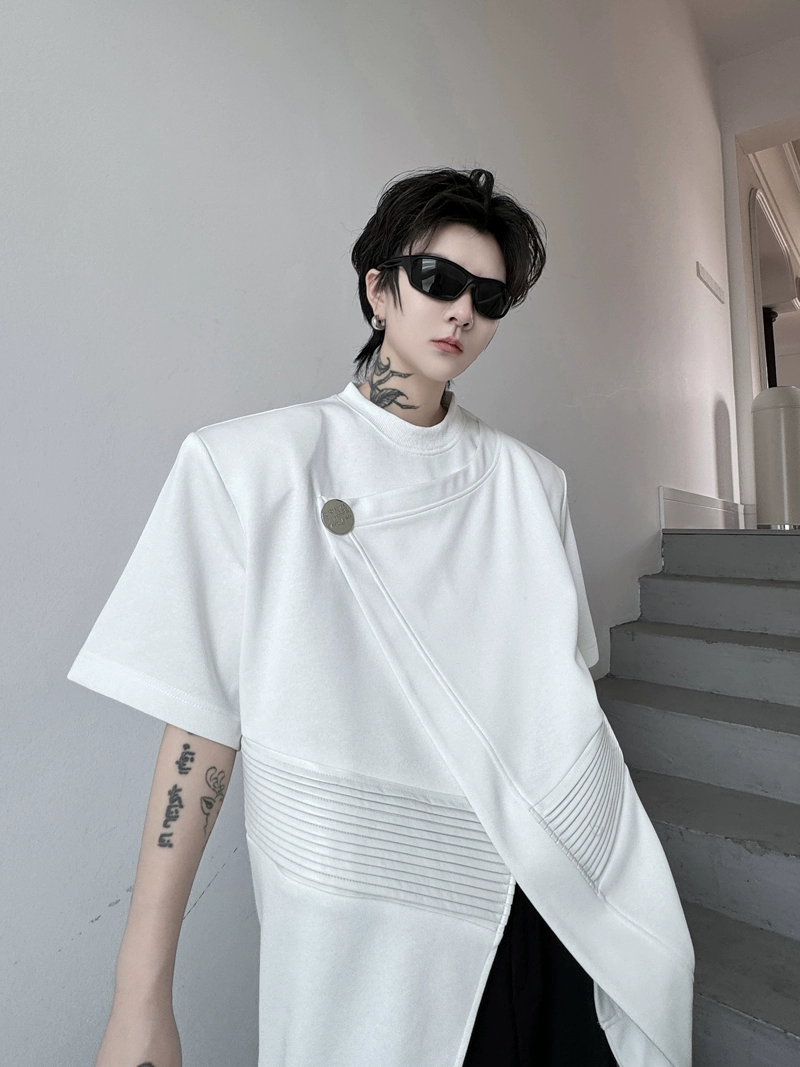 | nameOriginal | Handsome short-sleeved slit button leather hairstylist summer dress |
