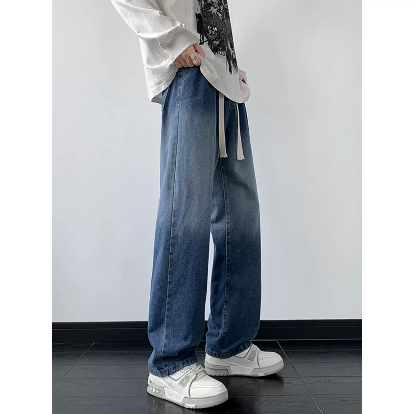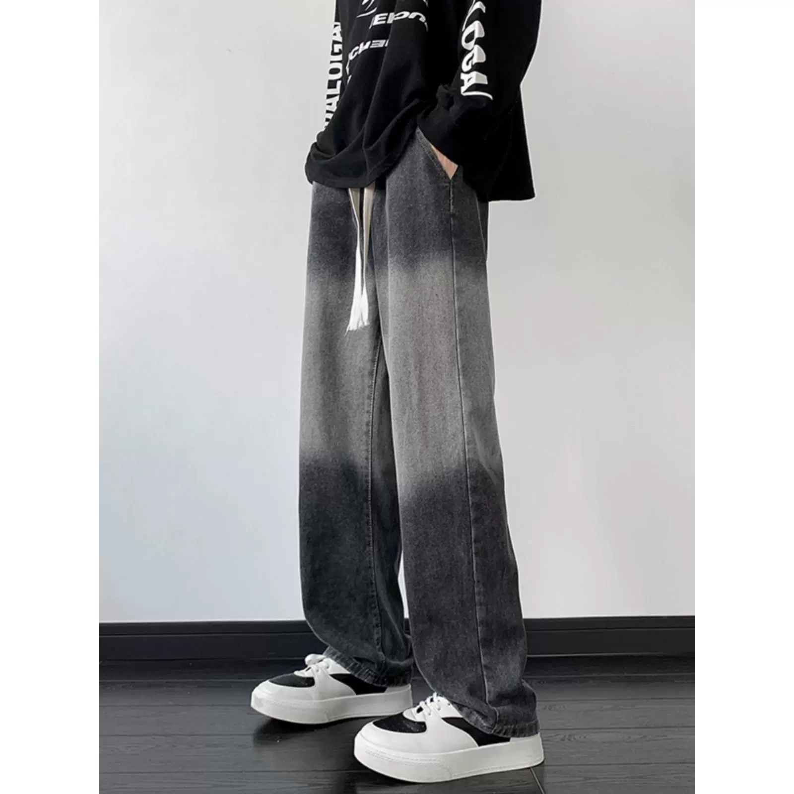 | nameOriginal | Handsome Street Style Elastic Waist Gradient Jeans Men's Spring and Summer Straight Drop Loose Pants Trendy Wide Leg Pants |