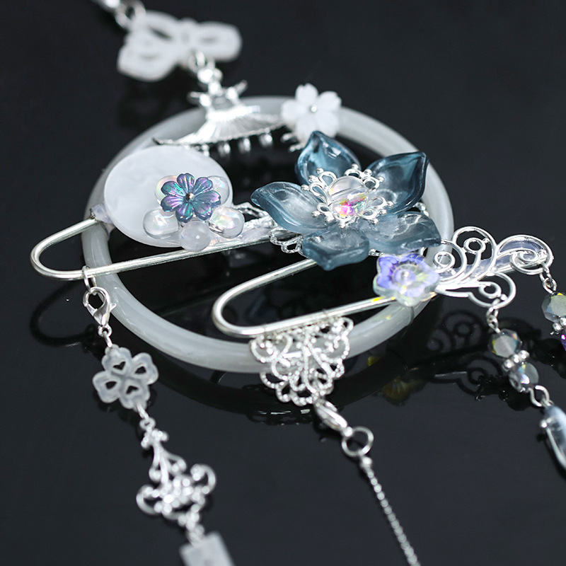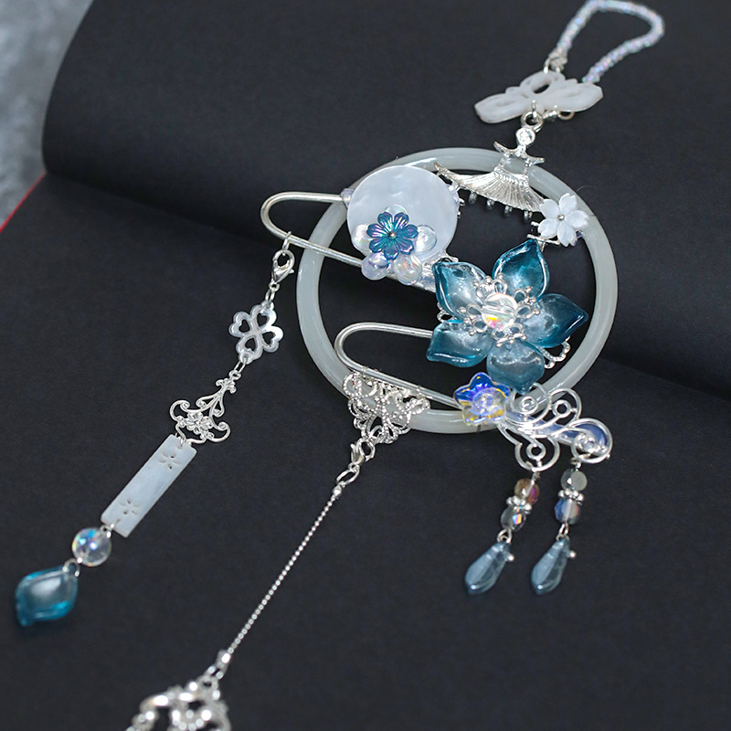 Hanfu accessories glass flower tassel forbidden ring chalcedony pendant ancient style waist pendant finished product Song Fengming