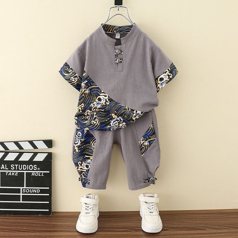Hanfu Boys' One-year-old Dress Boys' Baby Chinese Style Summer Dress Boys' Ancient Coat Children's Tang Suit Cotton Linen suit Thin