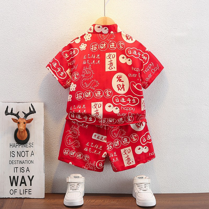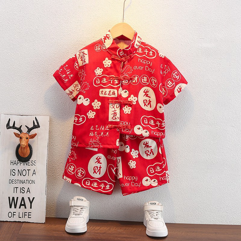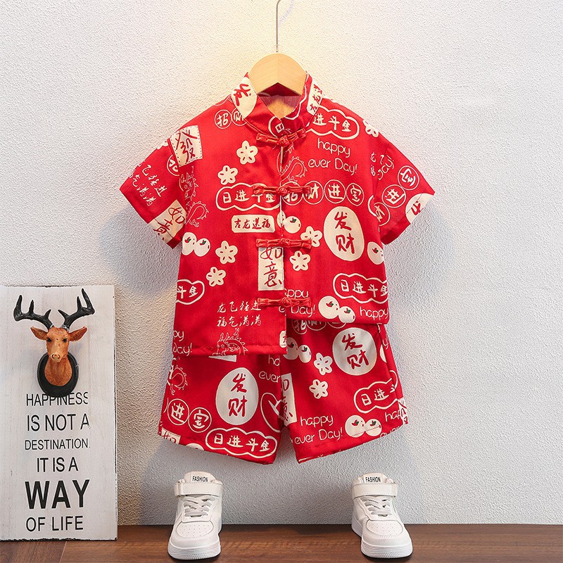 Hanfu Boys Summer Suit Children’s Chinese Style National Style One Year Old Dress Baby’s Summer Improved Tang Suit Performance Clothes
