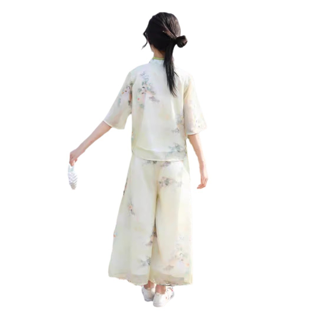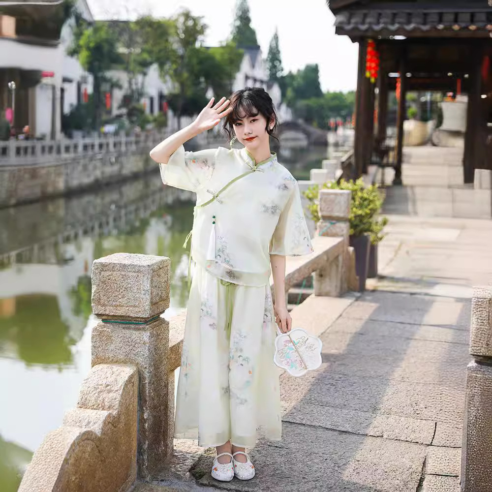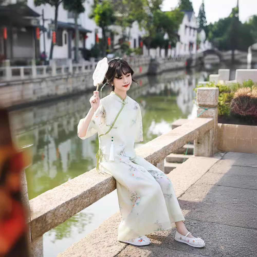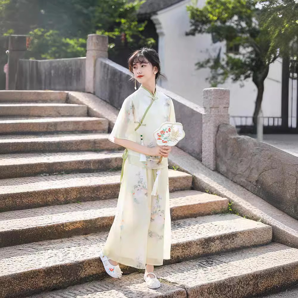 | nameOriginal | Hanfu girls 2024 new Tang suit new Chinese style suit dignified elegant women's wide leg pants cheongsam two-piece set |