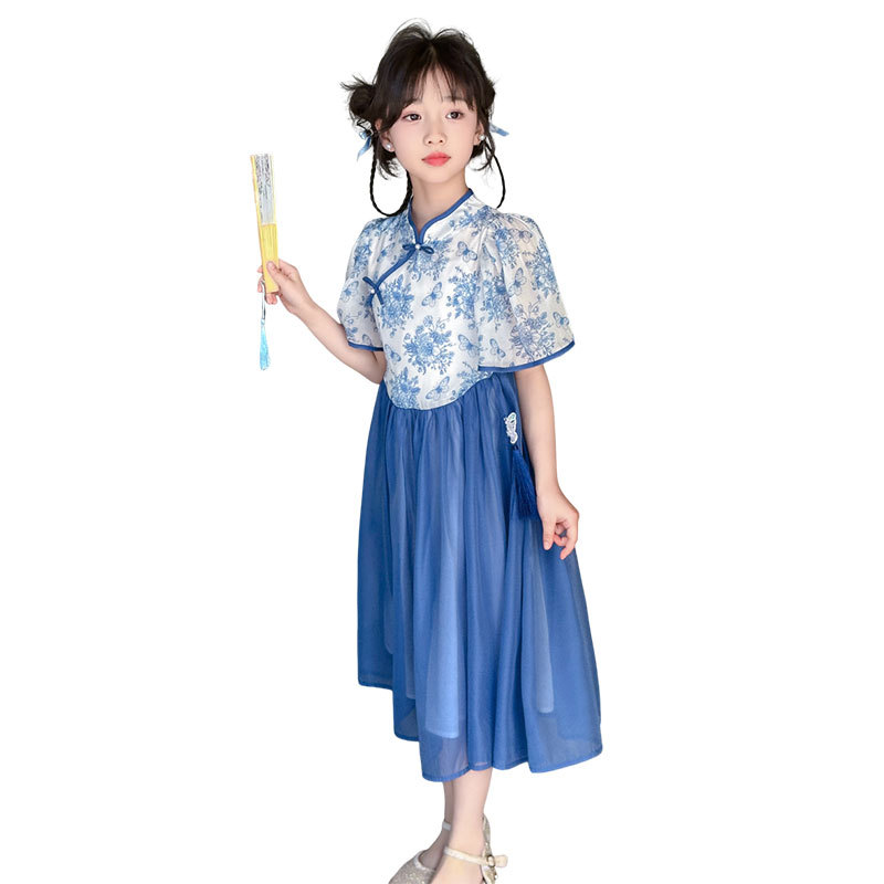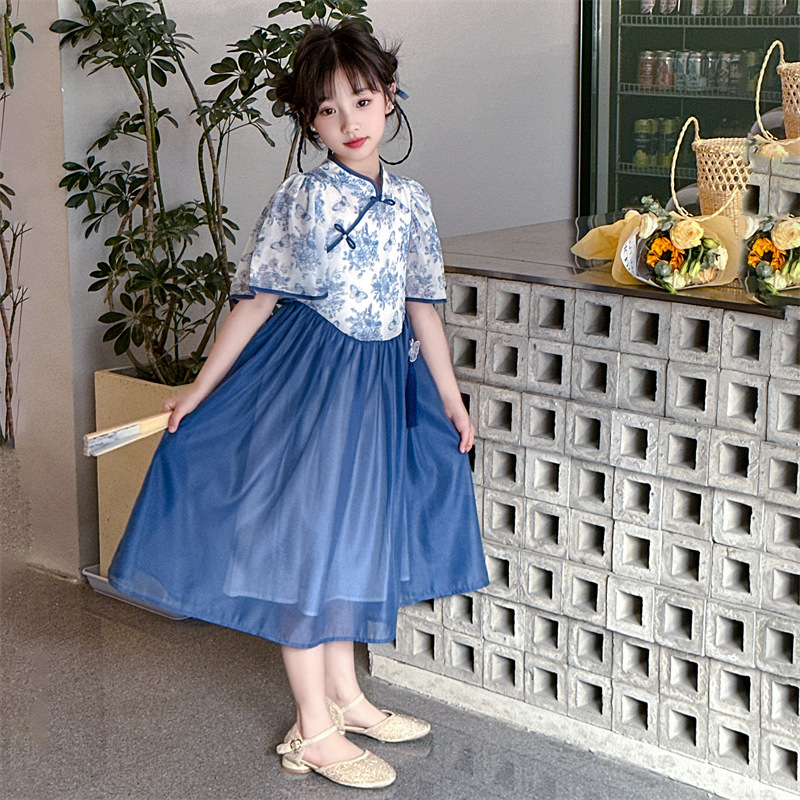 | nameOriginal | Hanfu Girl's dress Summer Dress 2024 New Children's Ethnic Style Blue and White Porcelain Cheongsam Girl's Summer Dress |